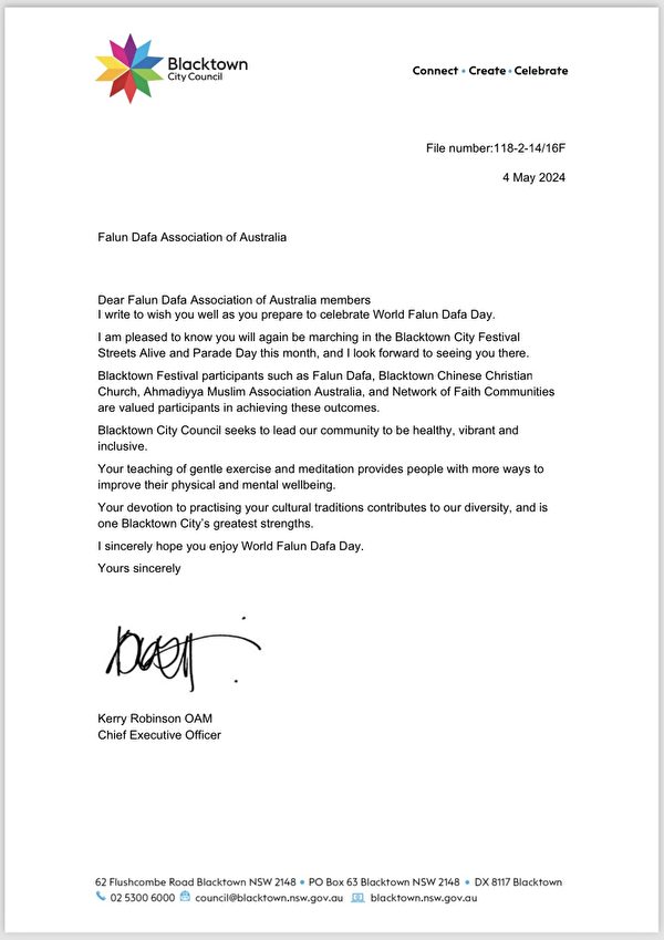 Blacktown市政府及市议员恭贺法轮功