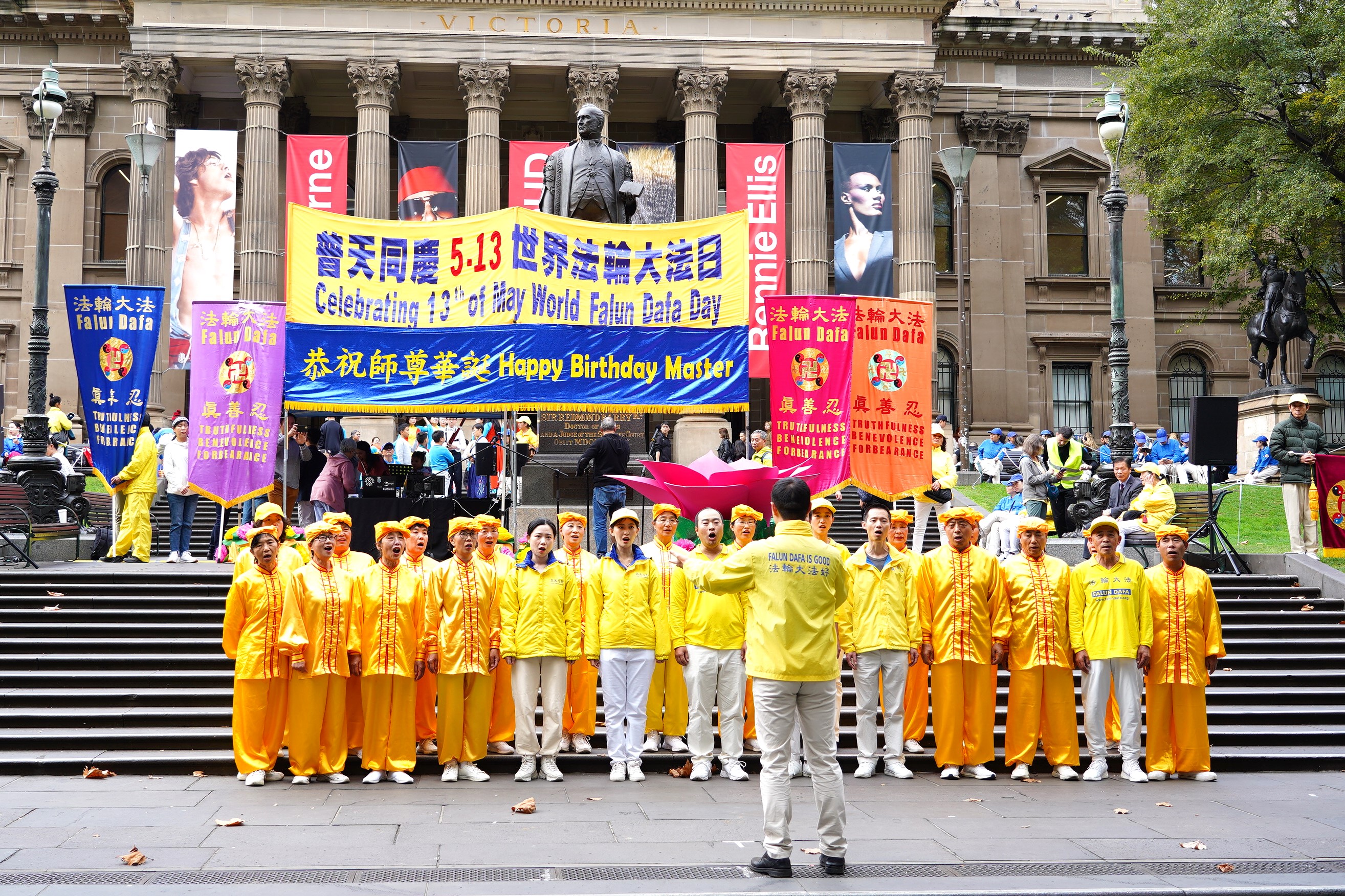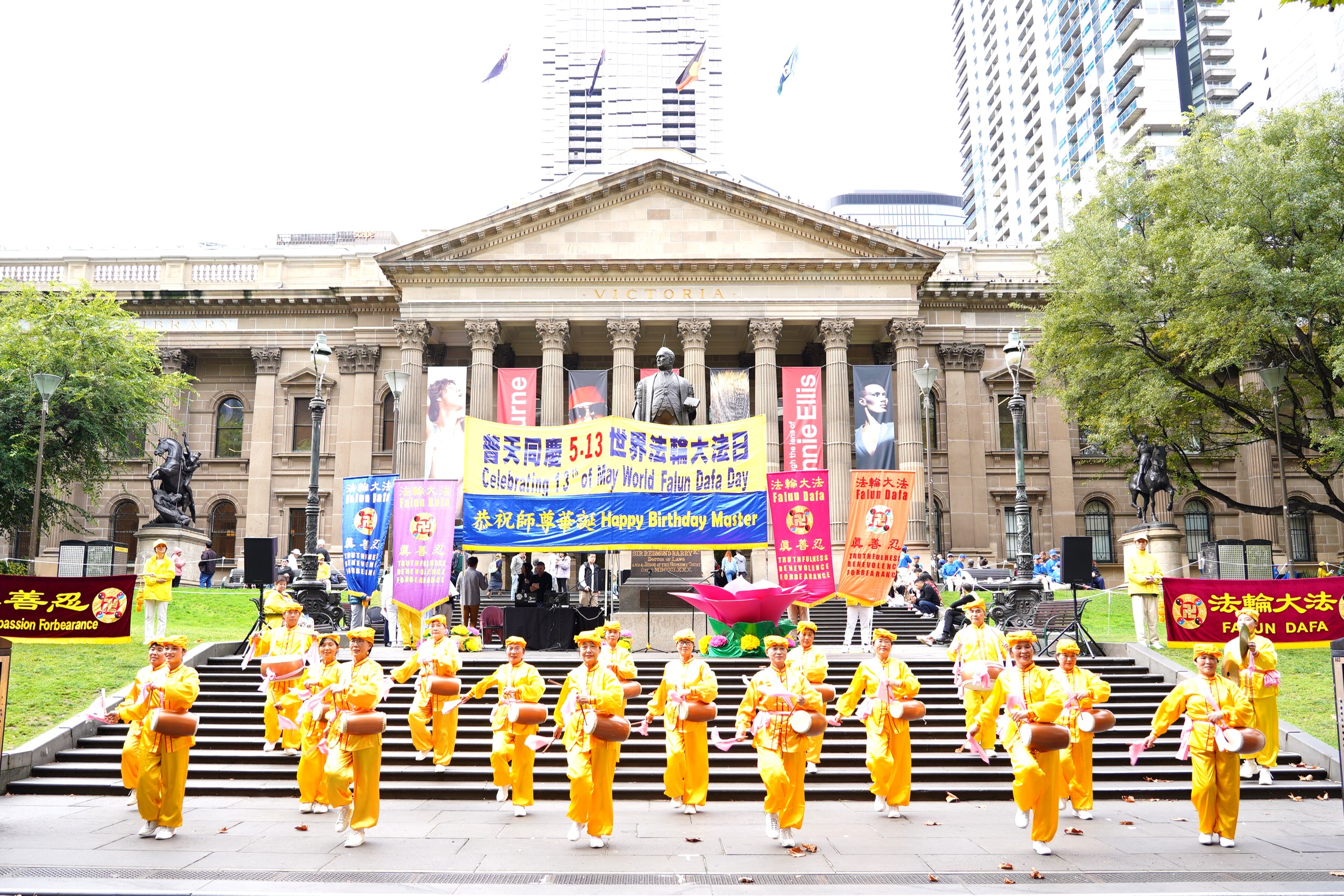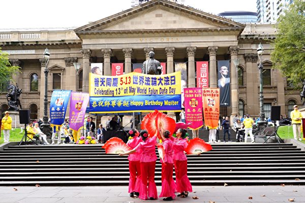 【大纪元2024年05月11日讯】(大纪元墨尔本记者站采访报导)2024年5月11日,在大游行结束后,澳洲墨尔本部分法轮功学员在州立图书馆(State Library of Victoria)前举行集会,庆贺法轮大法洪传32周年。