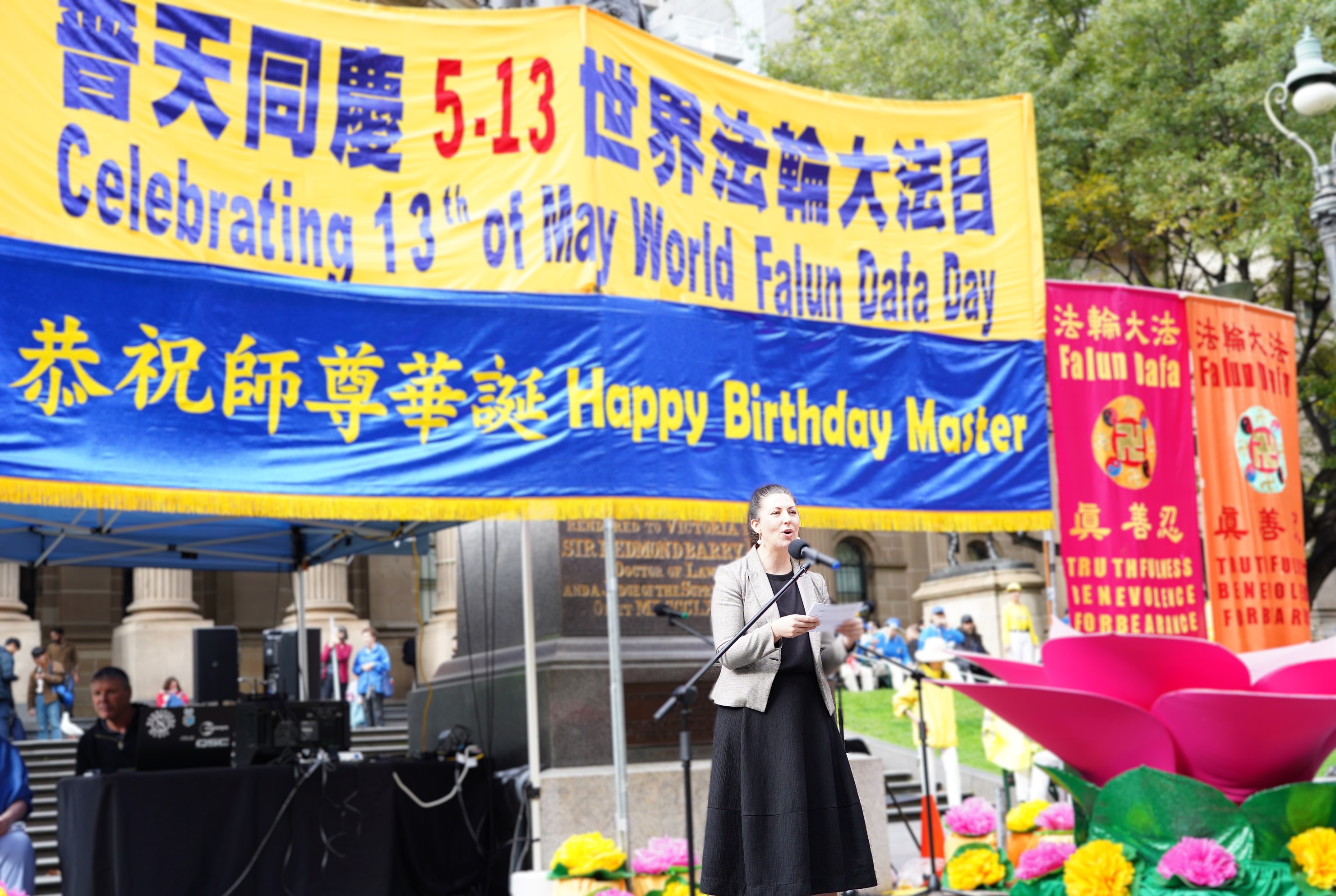 “5月13日对法轮大法团体来说是一个特殊的日子。1992年5月13日是法轮大法首次传出的日子;而5月13日既是世界法轮大法日,同时又是法轮大法创始人李洪志先生的生日,所以这一天是三重的庆祝。”维州法轮大法协会代表Rebel Jom介绍了法轮大法日的意义和由来。