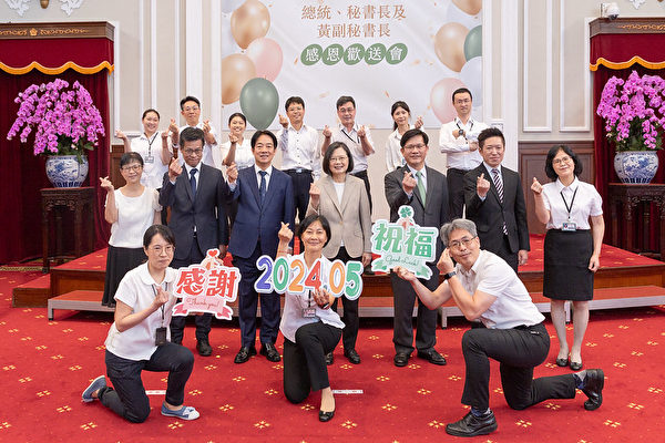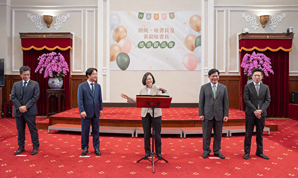 稍早,赖清德致词时表示,他要代表同仁及台湾社会衷心感谢蔡总统8年来戮力从公,为国为民、功在国家。这段时间大家应该都发现,蔡总统随时都挂着灿烂的笑容,因为8年的辛苦工作即将结束,能卸下重责大任,重新拥有自由自在的生活。