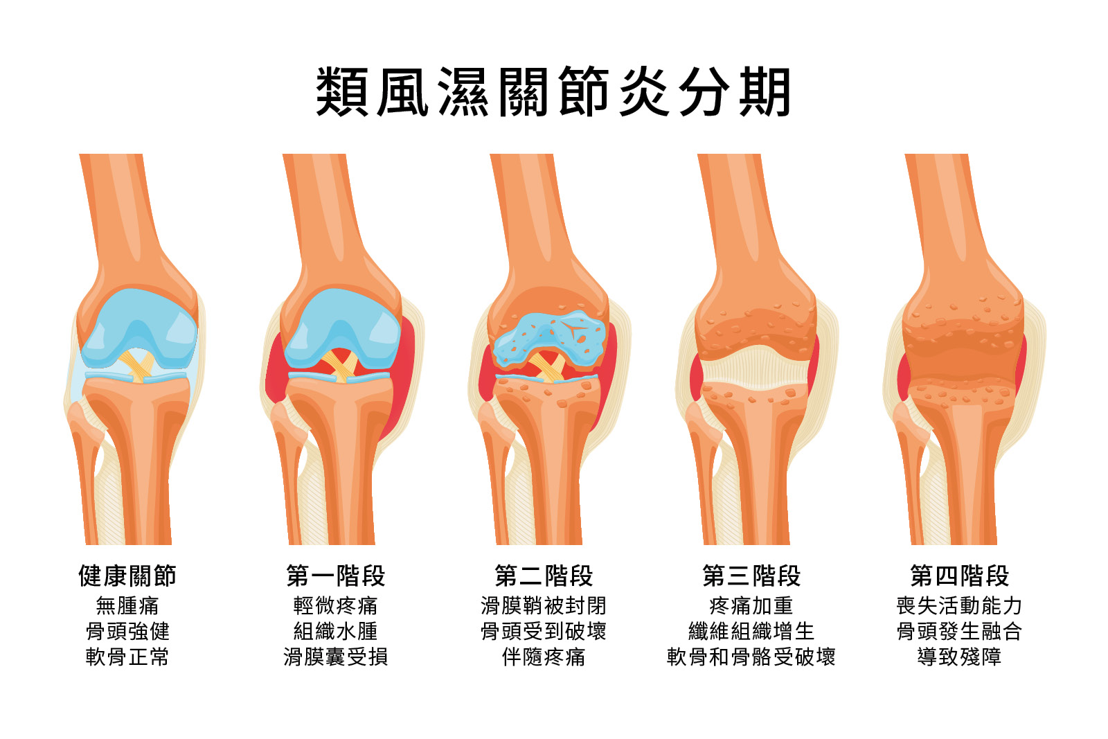 根据克里夫兰诊所网站,类风湿性关节炎的疾病进程一般分为如下阶段: