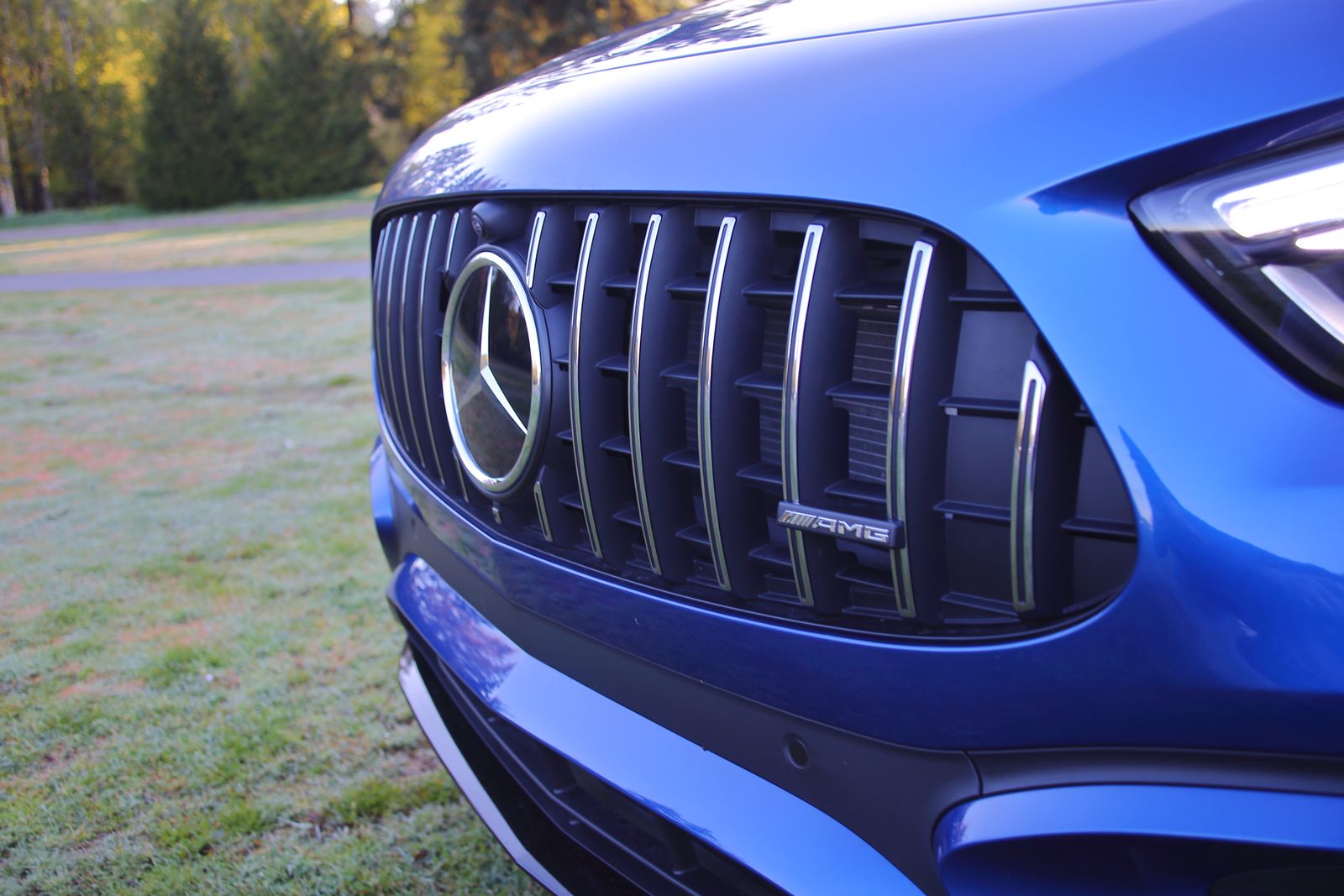 GLA 35的外观与GLA 250是有很多地方不一样,好像AMG专用的进风口栏栅,其他分别包括进气口上的黑色前唇饰条。侧面最吸睛的20吋多幅式哑黑色轮圈和黑色车门裙脚。后方则有车顶扰流板、底部扰流板和两个巨大圆形排气管。