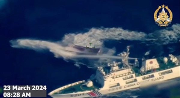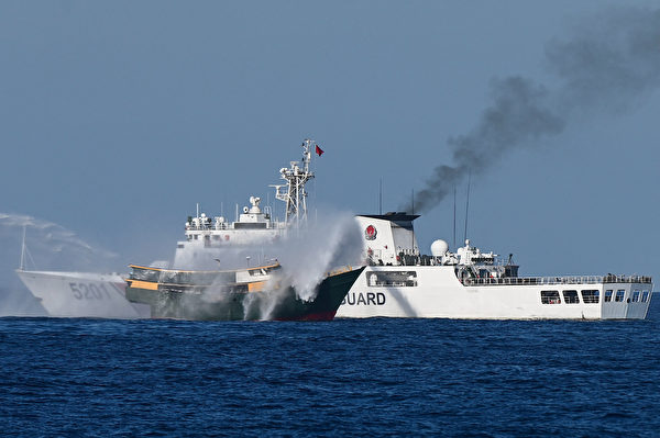 中菲在南海(南中国海)的冲突日益频繁。就在今年3月下旬,中共海警船对一艘前往仁爱礁(又称阿云津礁)的菲律宾船只使用水炮袭击,造成三名菲律宾船员受伤。当月早些时候,中共海警被指控用水炮袭击,导致四名菲律宾船员被碎玻璃打伤。