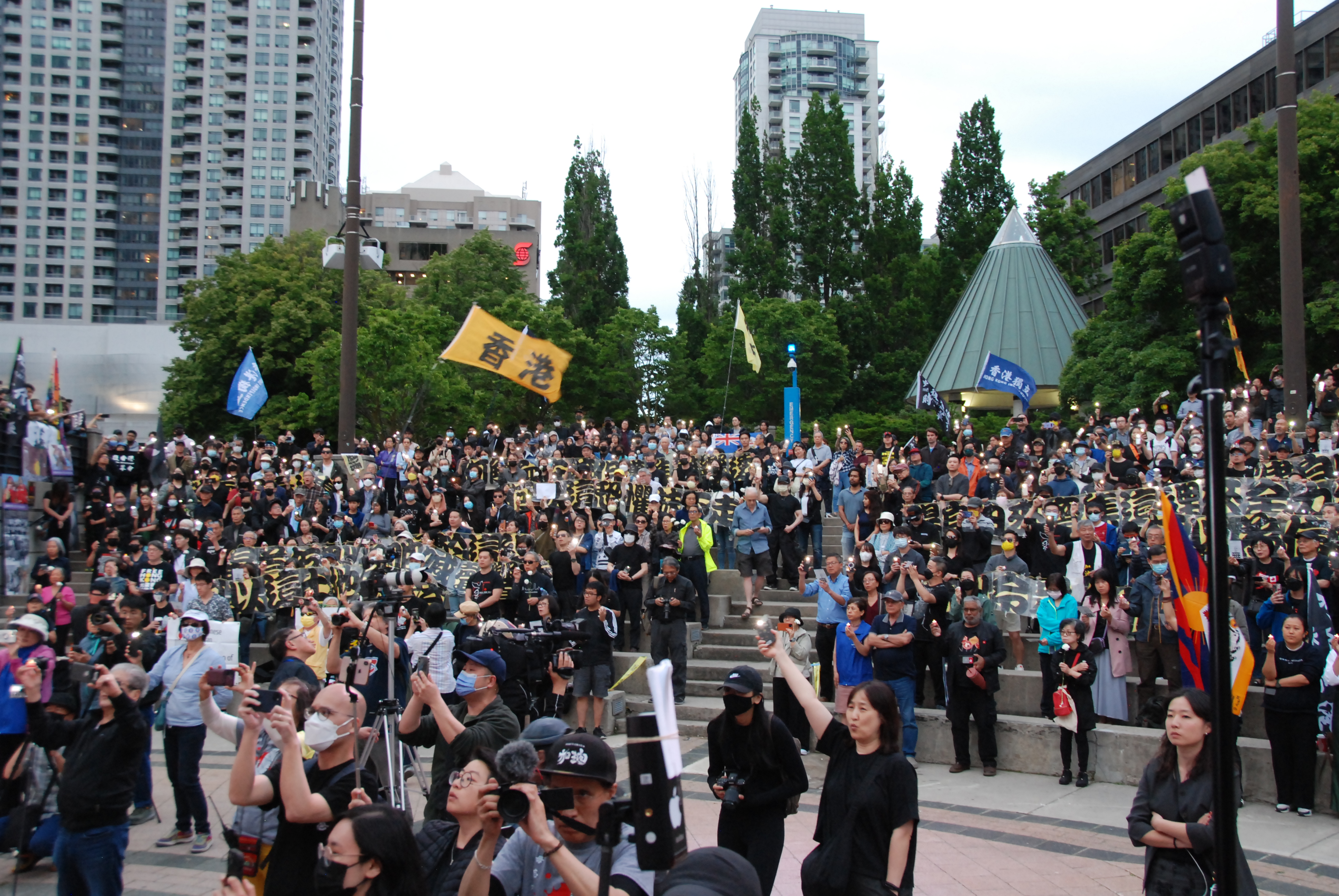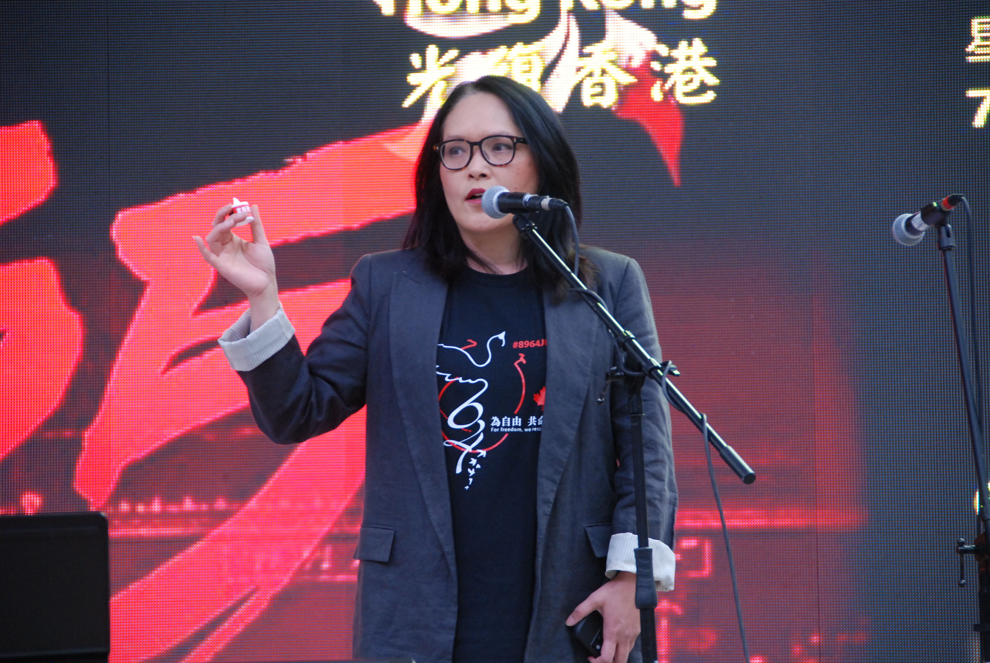 温哥华东区国会议员关慧贞到场支持。她表示,35年前,中国年轻人为了一个好的未来和发展机会,他们很多人牺牲了;而35年后,香港发生的事情仿佛历史重演。在香港和中国,人们不能发声。“因此,在加拿大,我们要大声地表达出来,让香港和中国知道,我们支持香港,我们永远不会忘记‘六四’。”她鼓励大家同心协力,继续揭发外国势力对加拿大的干扰和渗透。