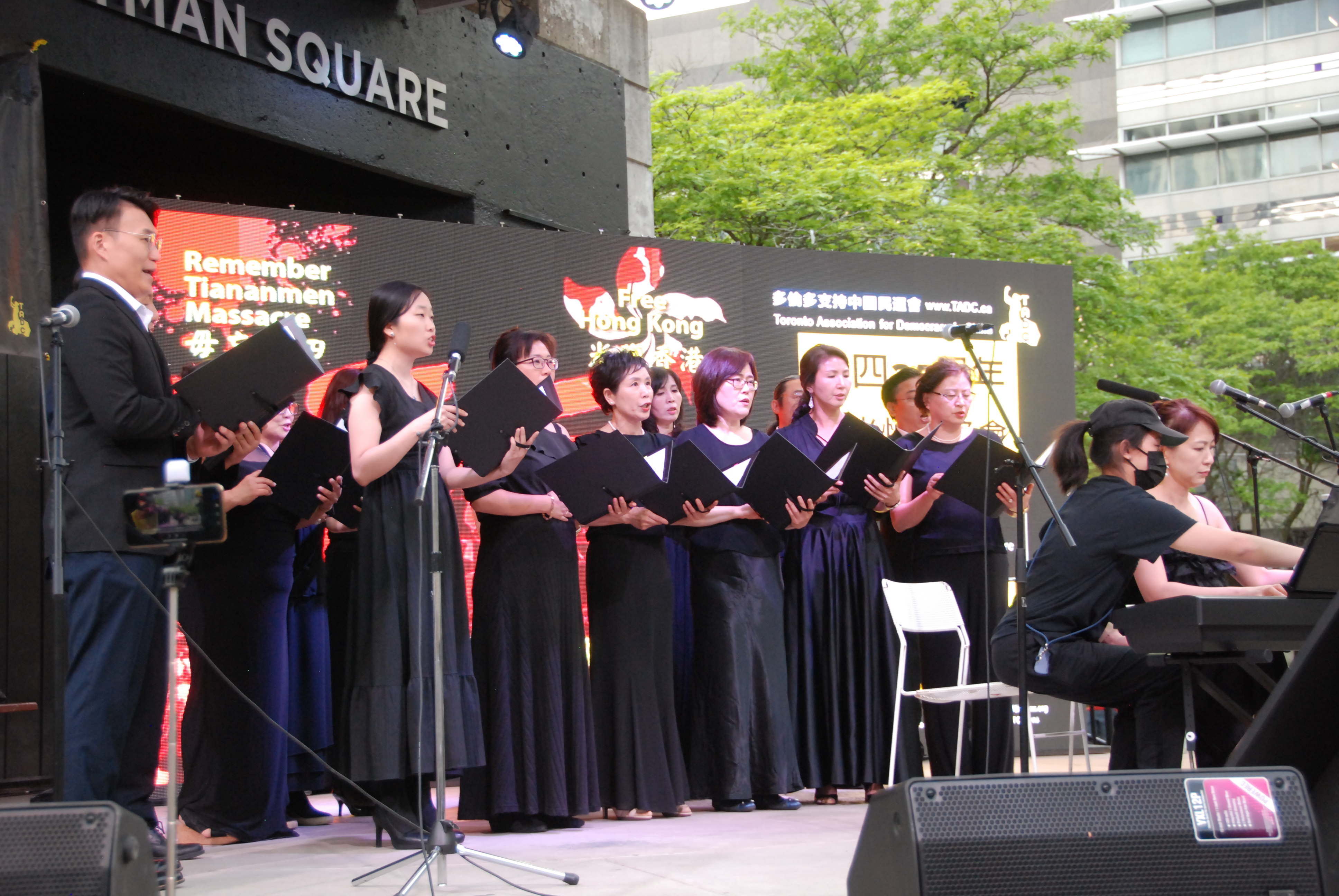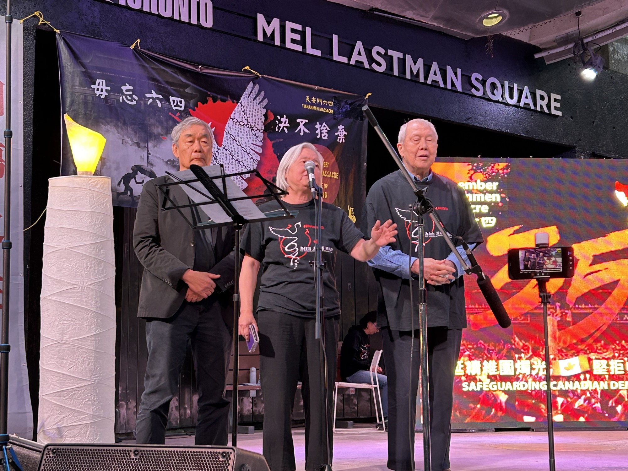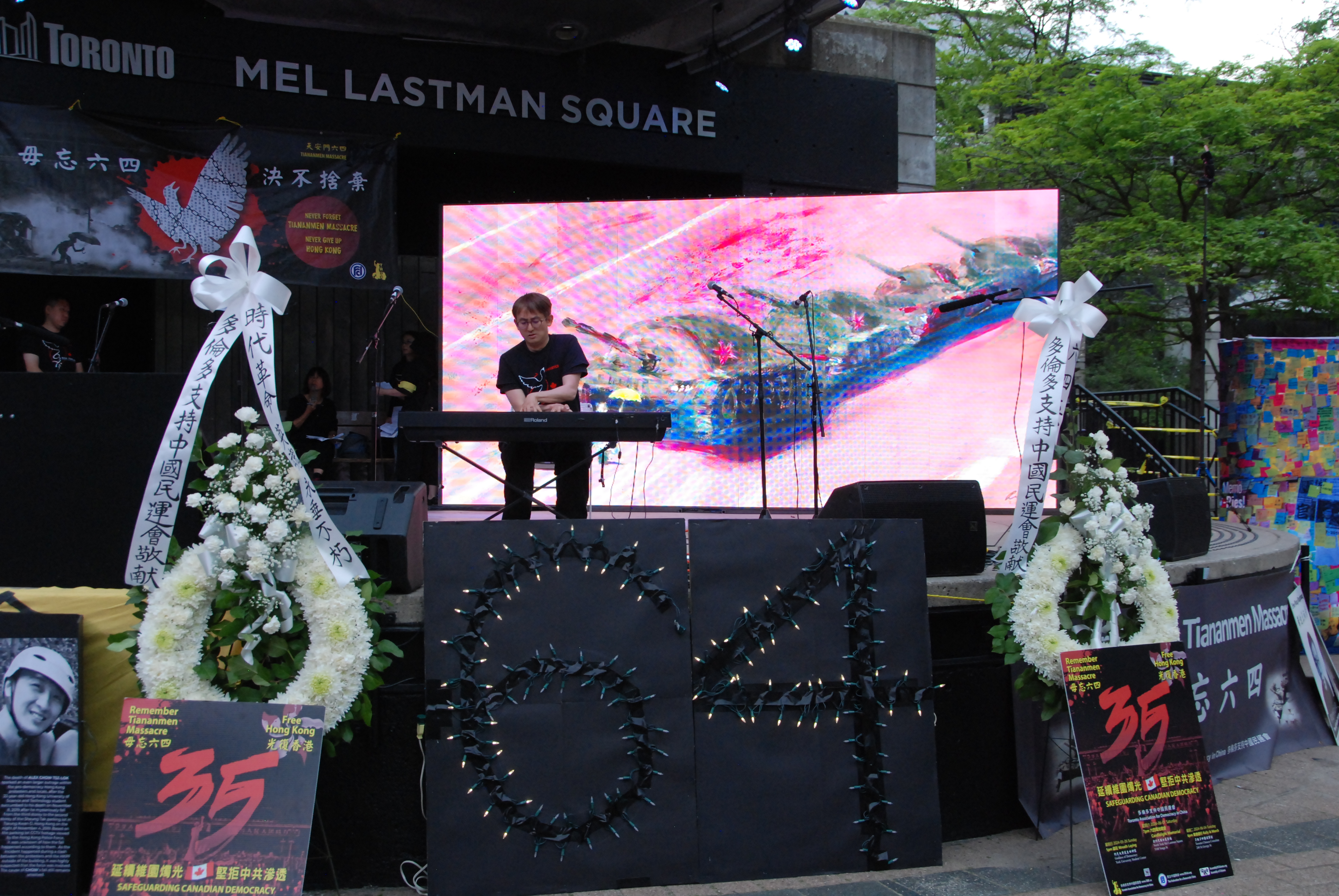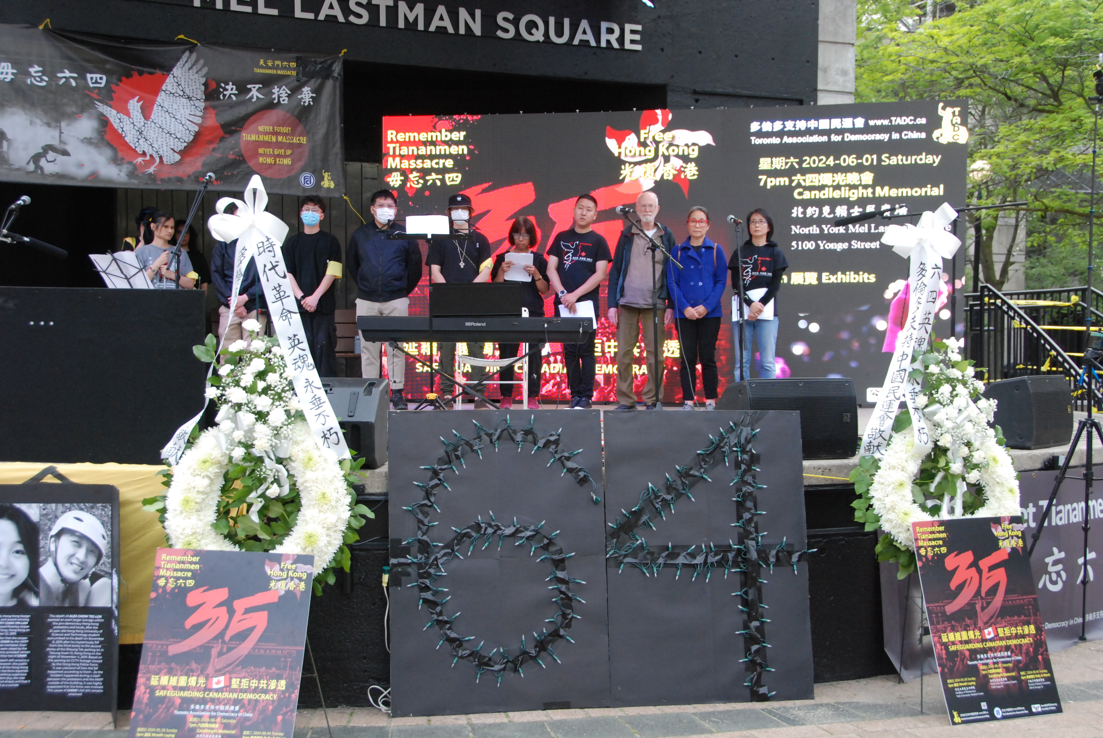 多伦多台湾同乡会会长David Hu表达了对“六四”屠杀暴行的谴责。民阵的刘岩以诗歌朗诵纪念“六四”;当地艺人Ricker Choi演奏系列乐曲,纪念“六四”及“反送中”运动。