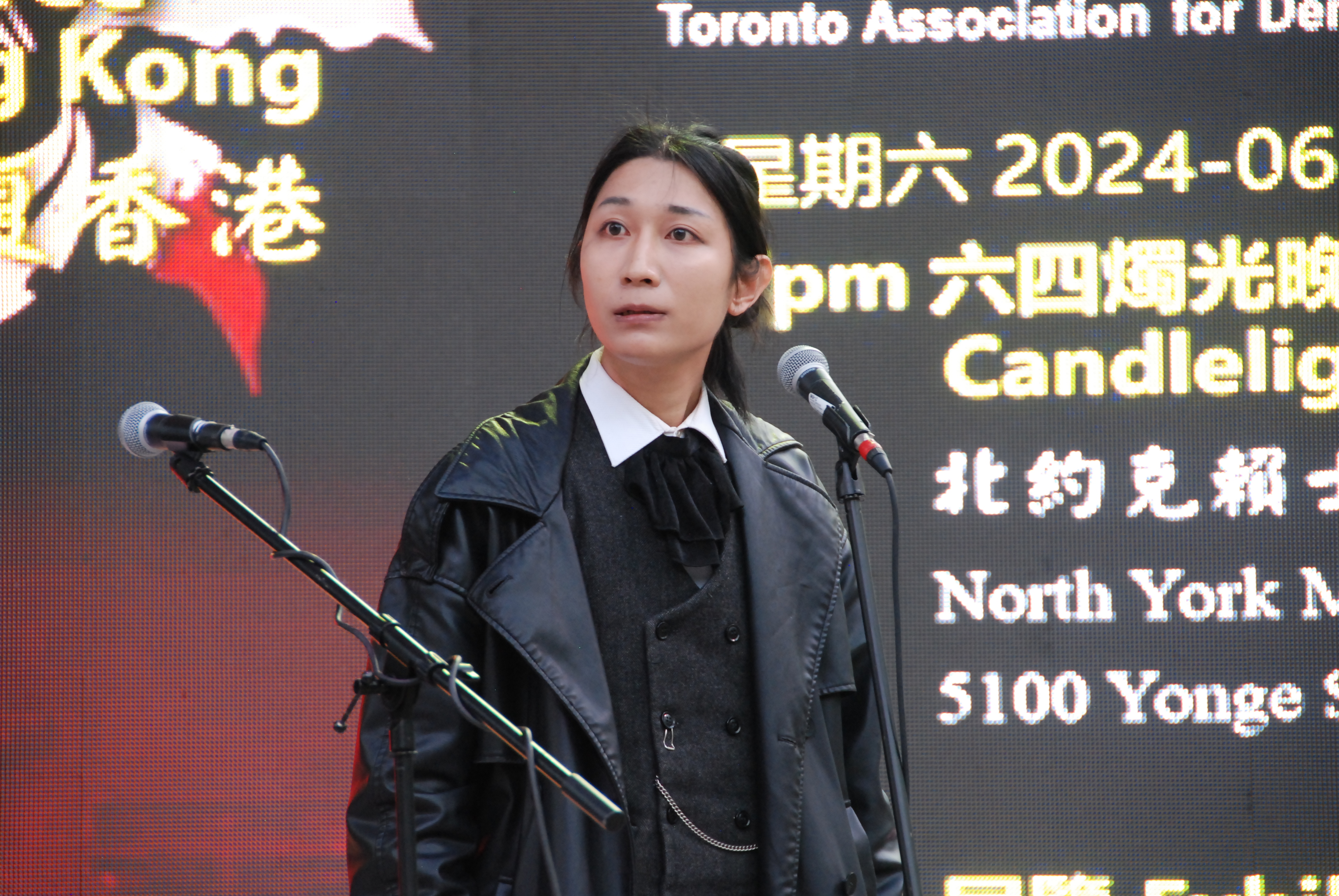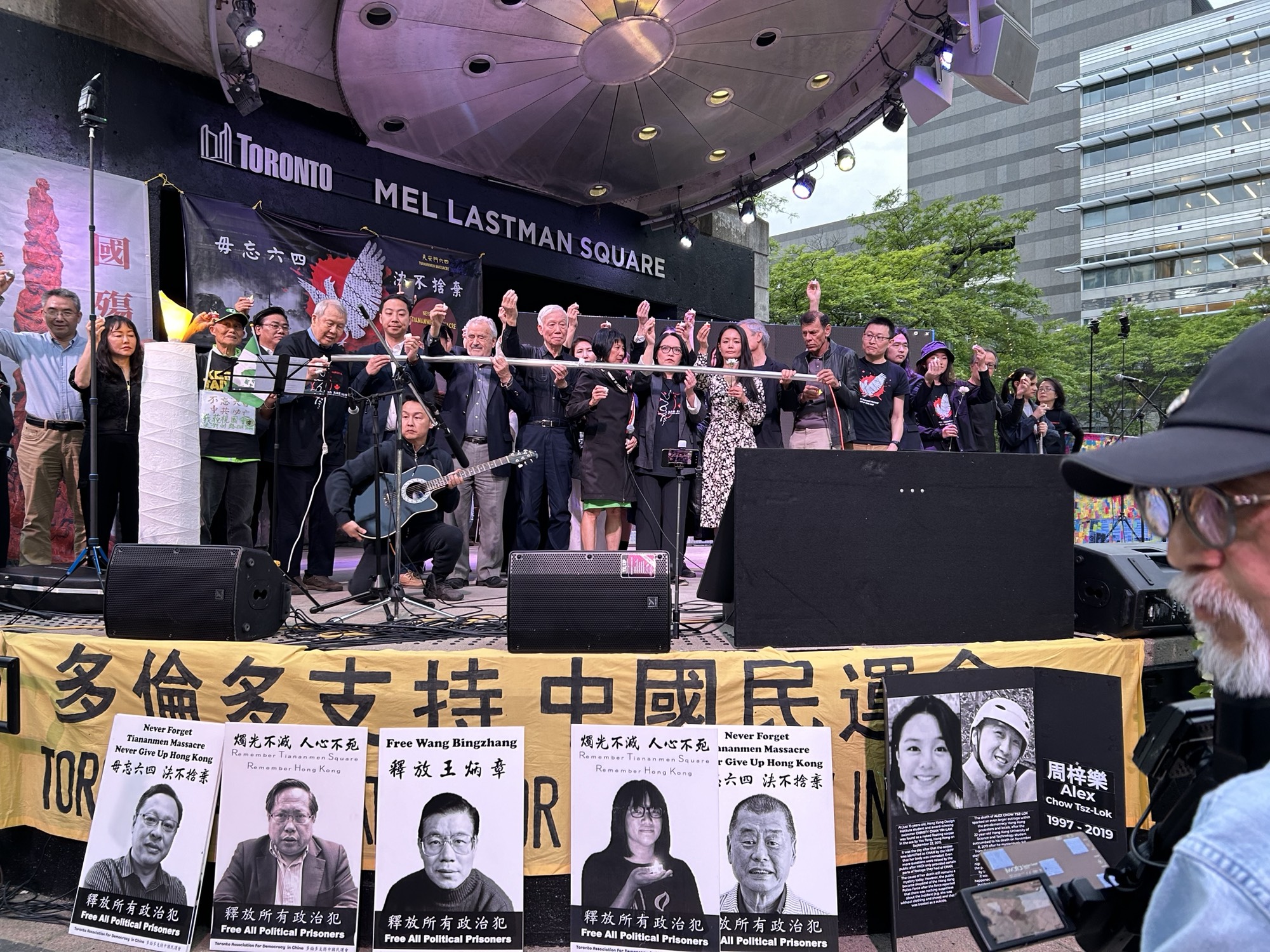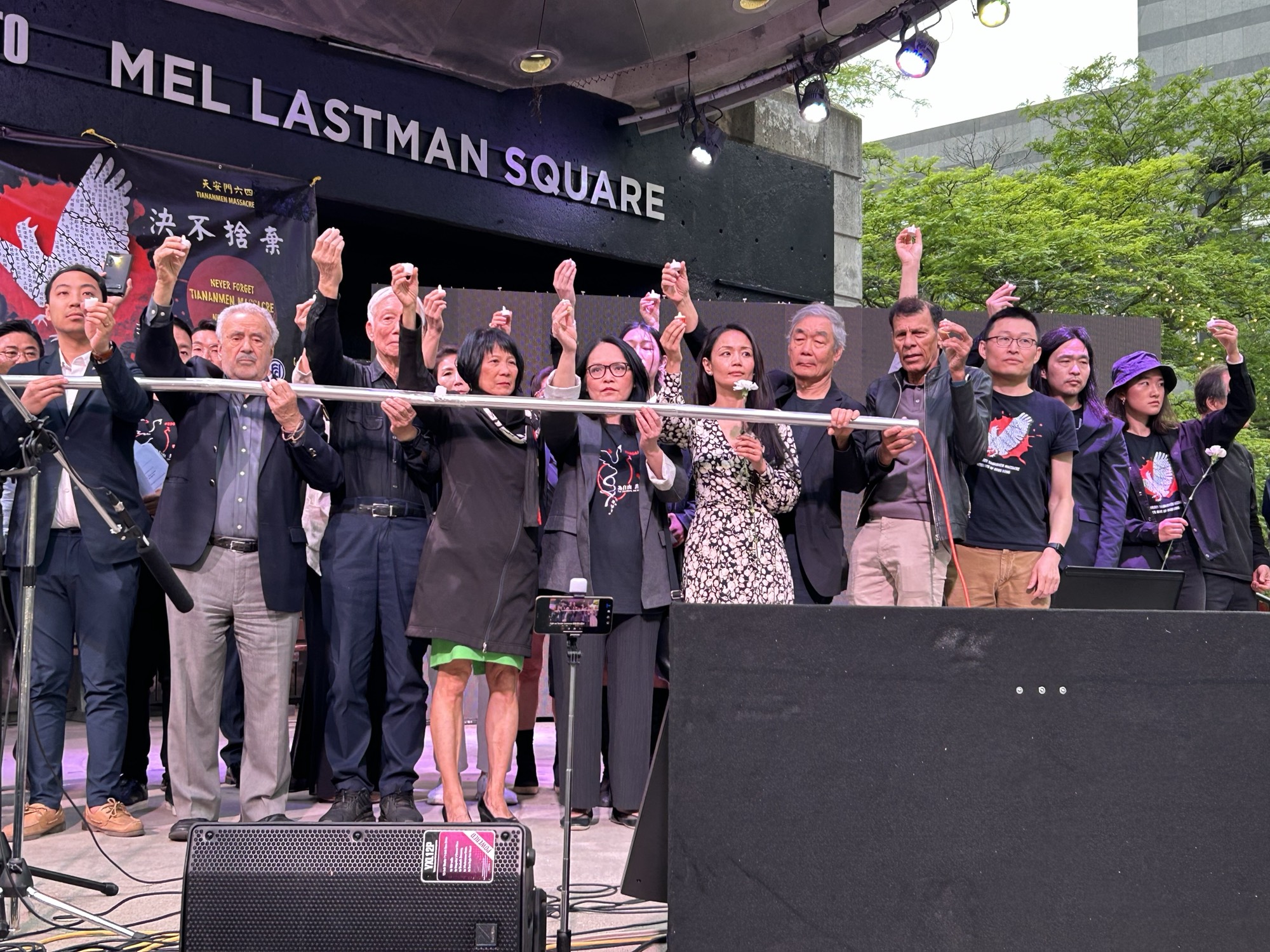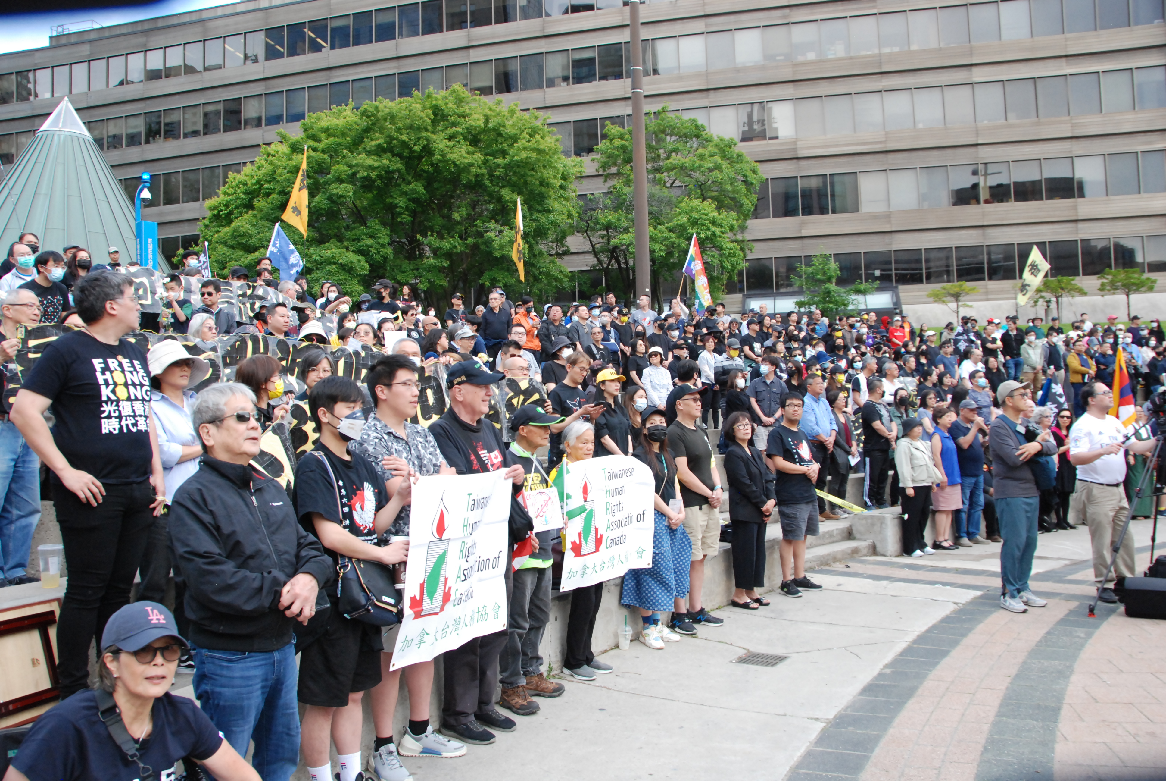 多伦多台湾同乡会会长David Hu表达了对“六四”屠杀暴行的谴责。民阵的刘岩以诗歌朗诵纪念“六四”;当地艺人Ricker Choi演奏系列乐曲,纪念“六四”及“反送中”运动。
