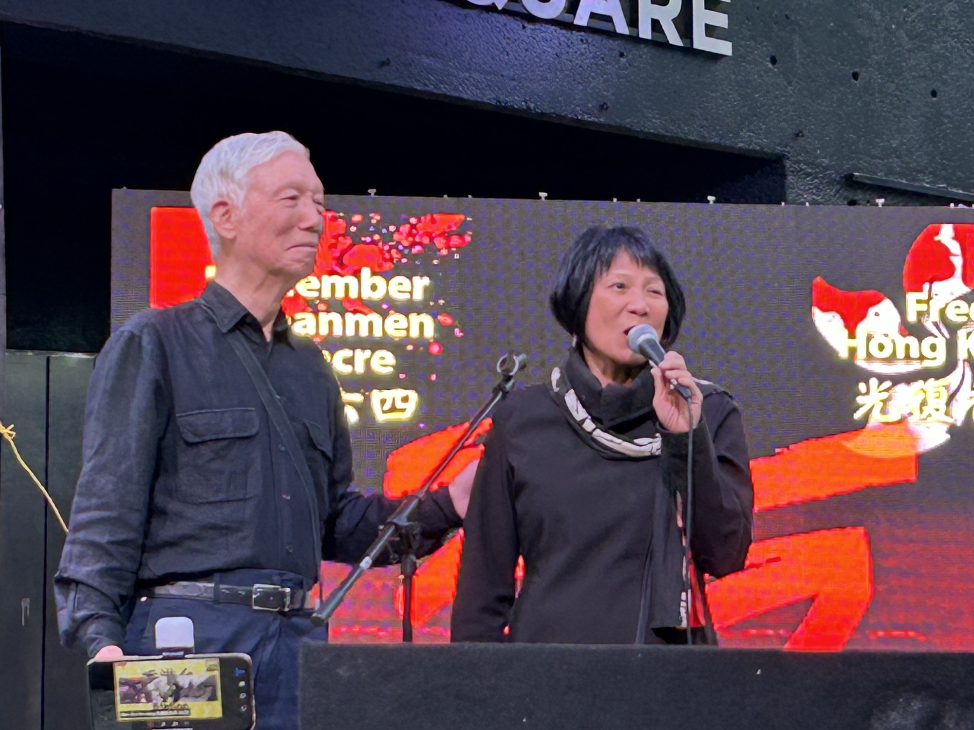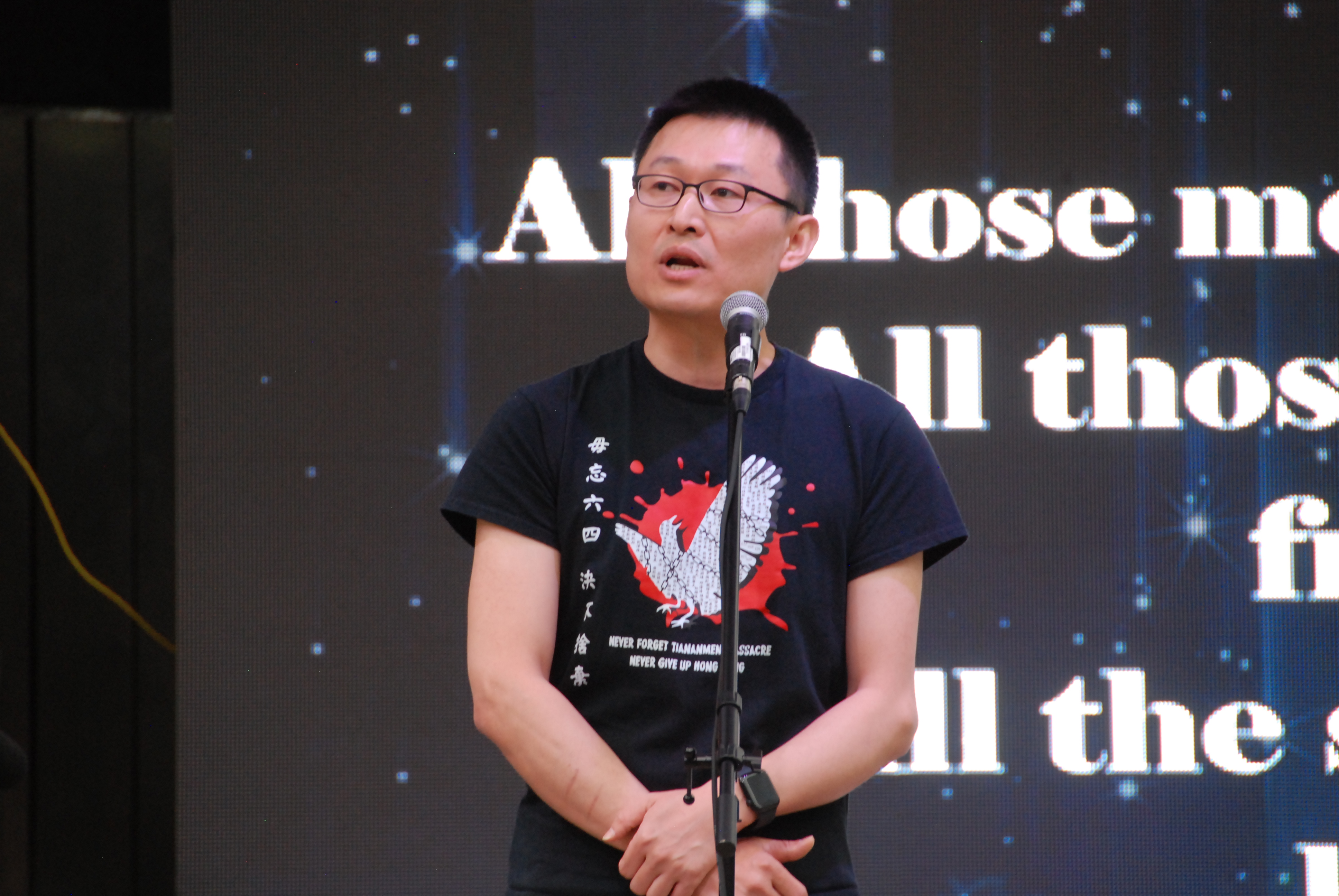 民阵代表蒋佳冀说:“没有暴民,只有暴政。”他认为,89年的学运并没有所谓的失败与成功,就如2019年“反送中”运动站出来的香港学生与市民一样,面对强权和暴行,学生没有沉默,民众更没有屈服。学生与民众一起坚守他们的信念,用他们的赤诚与血肉在机枪、坦克面前告诉世人:“不自由,毋宁死。”“这是我们的责任(It’s our duty)”。
