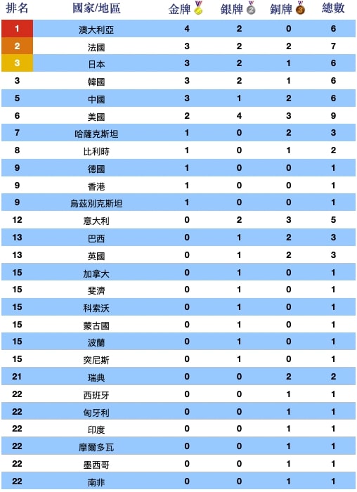 以下是7月28日北美时间14点51分更新的巴黎奥运奖牌榜: