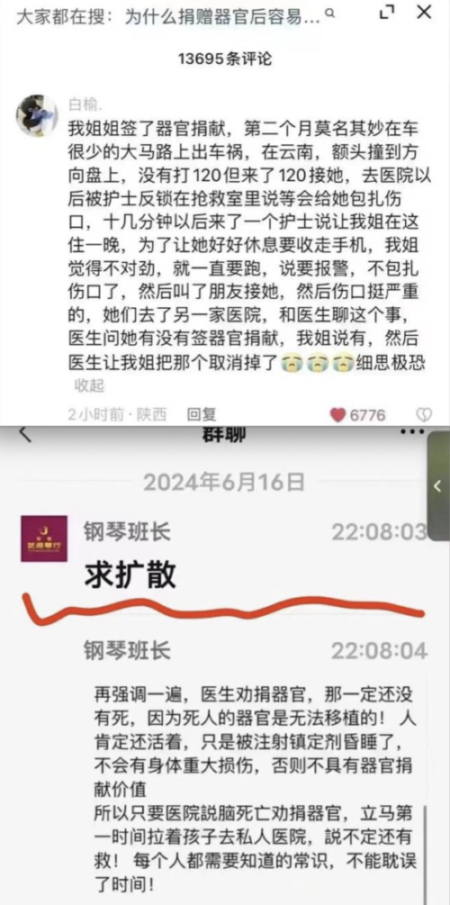 不过,官方报导引发舆论质疑,有网民指出:“器官捐献是个赤裸裸的骗局”,并暗示医院涉嫌“杀人越货”。