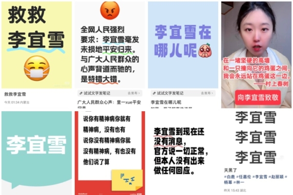 尽管如此,众人还是每天在网上继续为李宜雪发声,有的网友将自己社交媒体账号改成李宜雪的名字或营救李宜雪的内容,有的网友还把为李宜雪发声作为自己每天必打卡的内容。