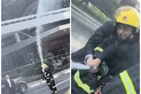 视频中拿高压水枪的人穿着消防服,留言区有网民不禁询问,“这啥情况?消防员拿水枪冲你们?”拍摄视频的农民工回复说,“应该是保安,每个楼都有临时消防站,有衣服。”