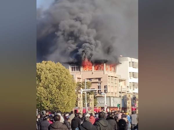 此外,安徽明光南湖公园附近一楼房顶层也发生火灾。视频显示现场火势熊熊,浓烟滚滚,附近有许多民众围观。