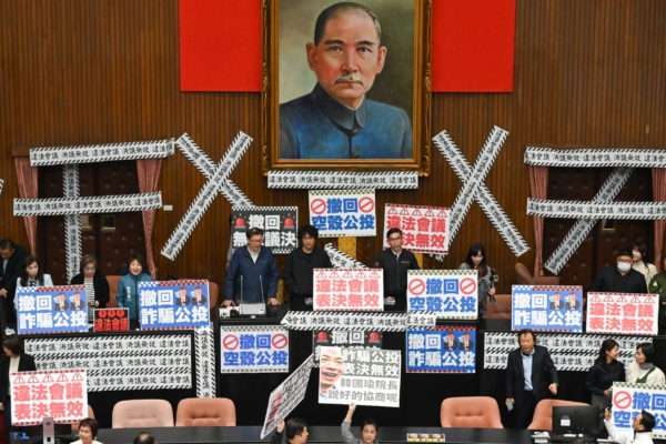 2024年12月20日,蓝白立委突破民进党防线,抢下主席台,并护送立法院长韩国瑜上台,将《选罢法》《宪法诉讼法》《财政收支划分法》一口气全数通过。而立法院外当时也聚集超过2万民众持续抗议蓝白强行通过所谓的“乱政三法”。