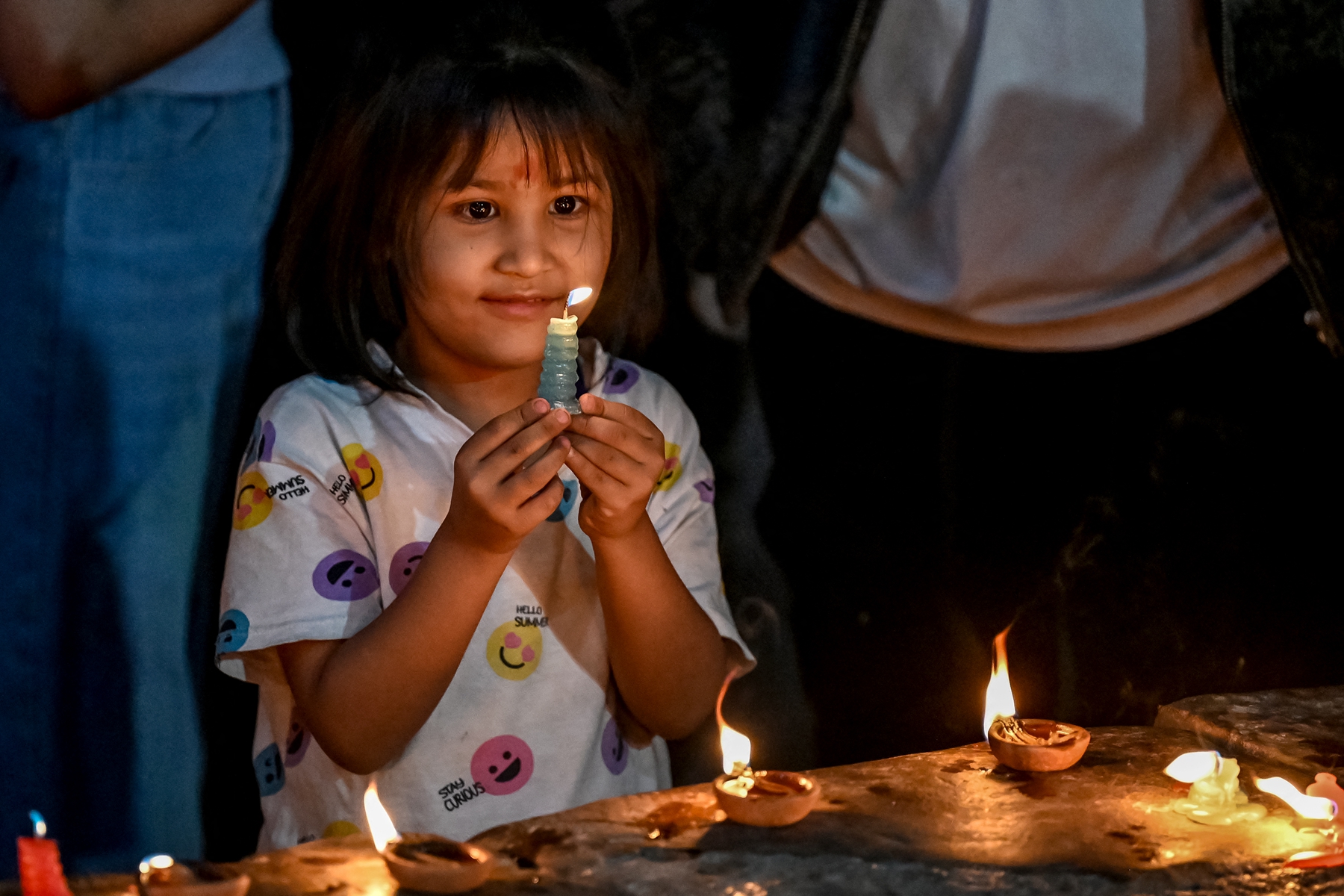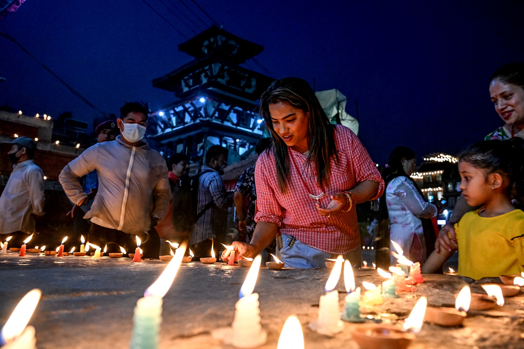 2025年4月25日,即尼泊尔“4.25”大地震十周年之际,一名小女孩参加在加德满都举行的烛光守夜活动。(Prakash Mathema/AFP via Getty Images)