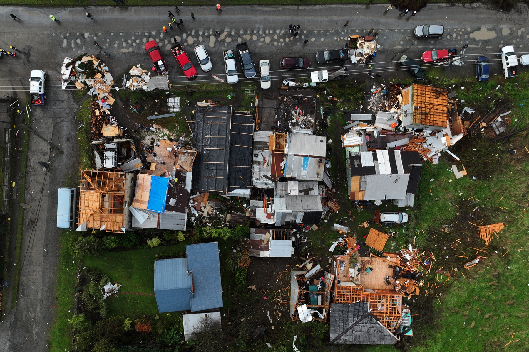 智利当局表示,当地时间周日(5月25日)下午,一股时速高达180公里的EF-1级龙卷风袭击了圣地亚哥以南近1,000公里处的巴拉斯港,沿途造成严重破坏,导致19人受伤、超过250栋建筑物受损,大量树木和电线杆被吹倒,灾区满目苍夷。