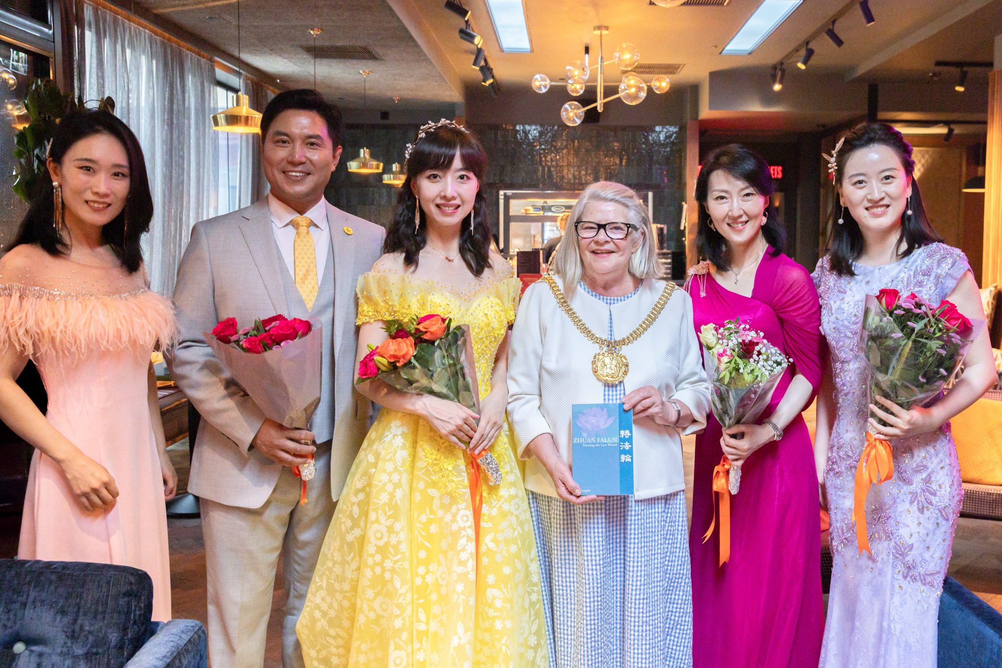 《新演员梦》6月21日在英国利物浦首映,市长Barbara Murray喜获电影中提到的那本奇书。(Yufei Song/新世界影视)
