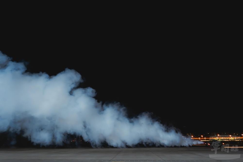 中华民国国防部长顾立雄了解夜间跑滑道抢修演练流程。(军闻社提供)