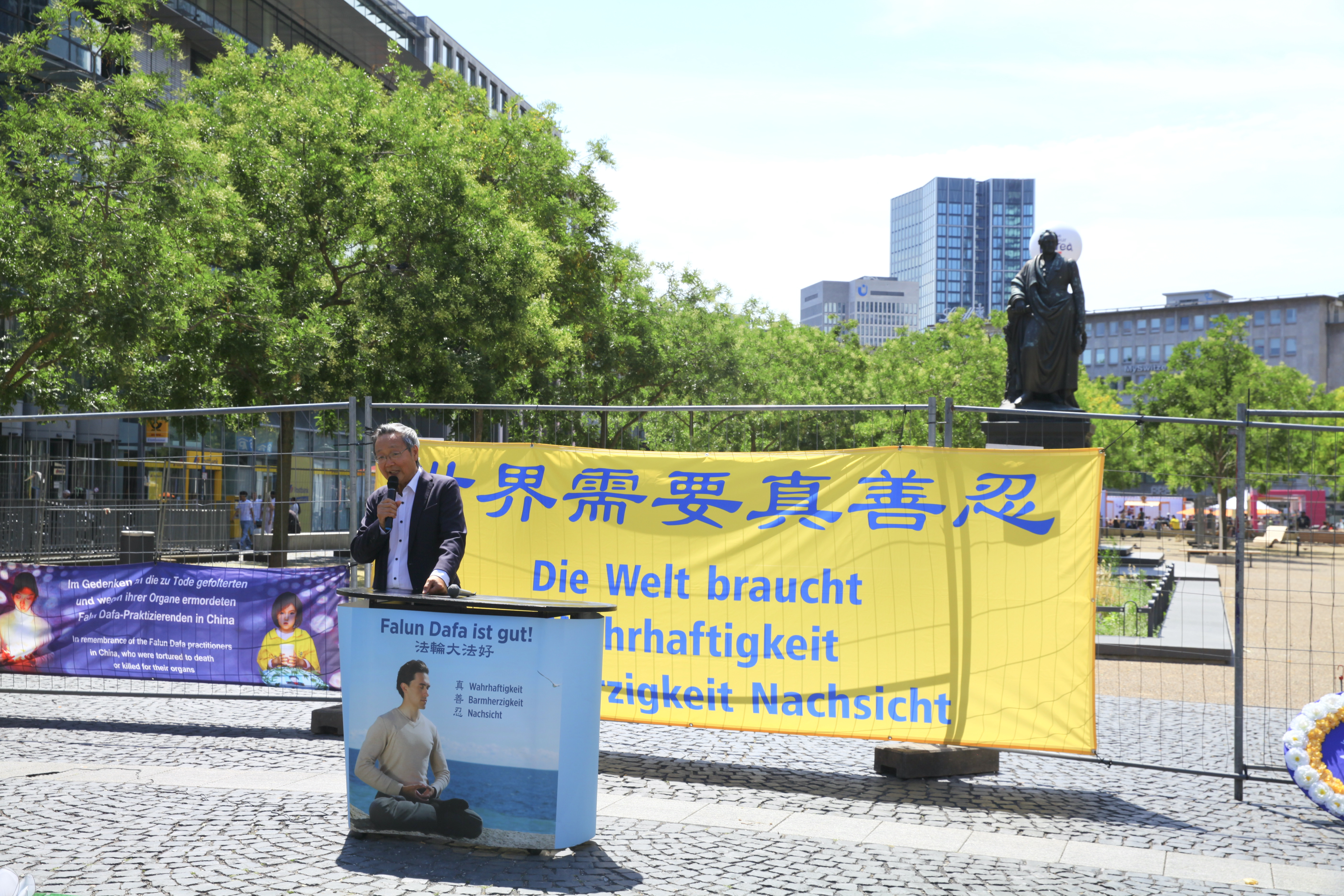 德国国际人权组织的理事会理事吴曼杨(Manyan Ng)先生也到场发言声援。他说:中共对法轮功的残酷迫害已持续26年了,且丝毫没有减弱的迹象。“对法轮功的迫害不仅是对一个精神运动的攻击,更是中共打压异见人士、为其全球霸权铺平道路的更广泛战略的一部分。结束这场迫害不仅能减轻无数人的苦难,也能减少中共带来的威胁,巩固世界和平。”
