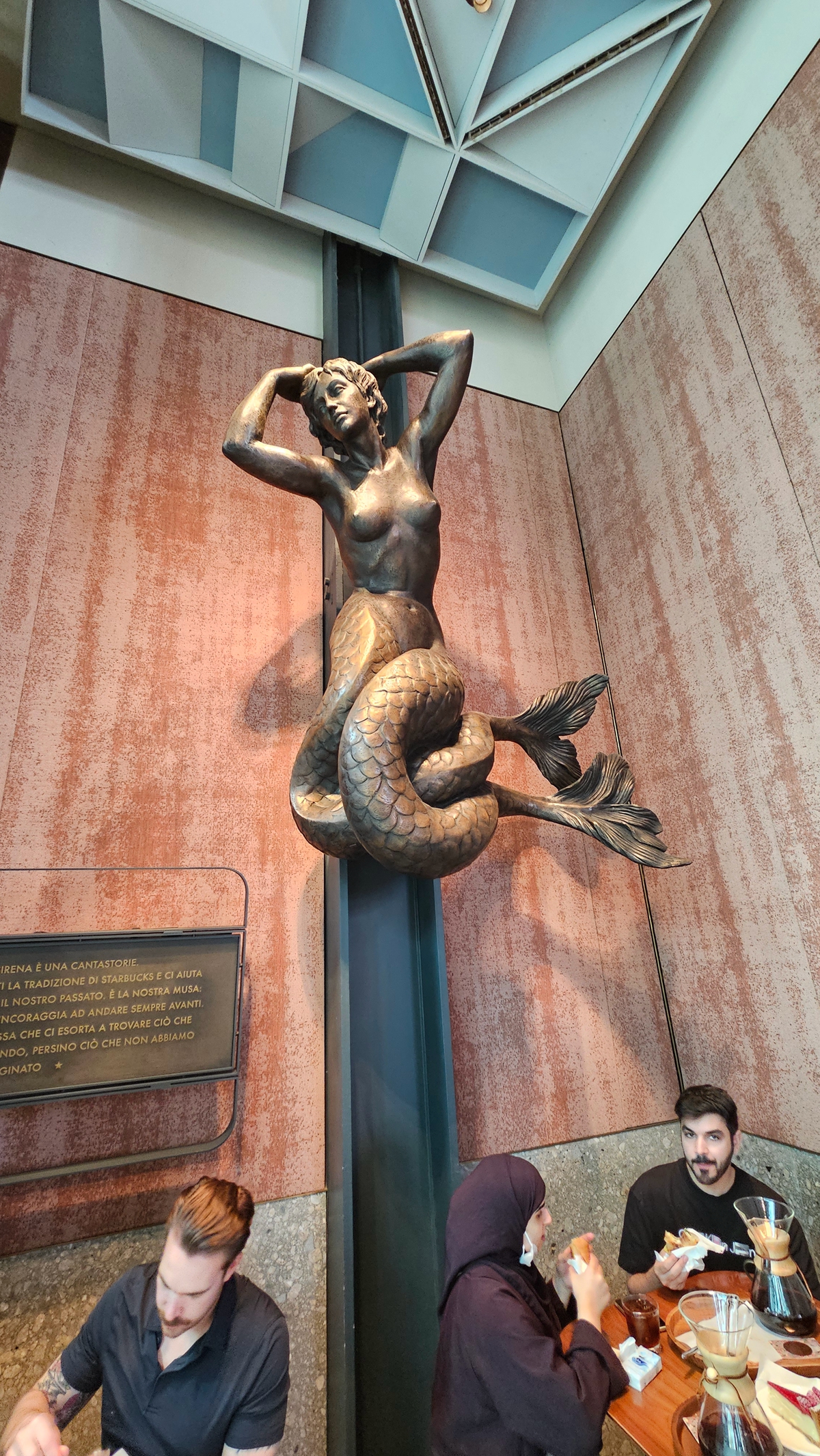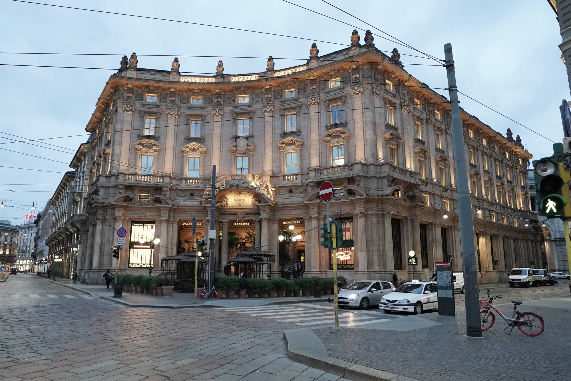 这间米兰星巴克位于市中心科尔杜西奥广场(Piazza Cordusio)历史悠久的邮政大楼内,这栋建于1901年的建筑曾做为证券交易所和邮局之用,山形墙、半露方柱和宏伟壁柱传递了16世纪折衷主义的建筑风格,和米兰大教堂、艾曼纽二世回廊、斯卡拉大剧院等城市地标仅有几步之遥。