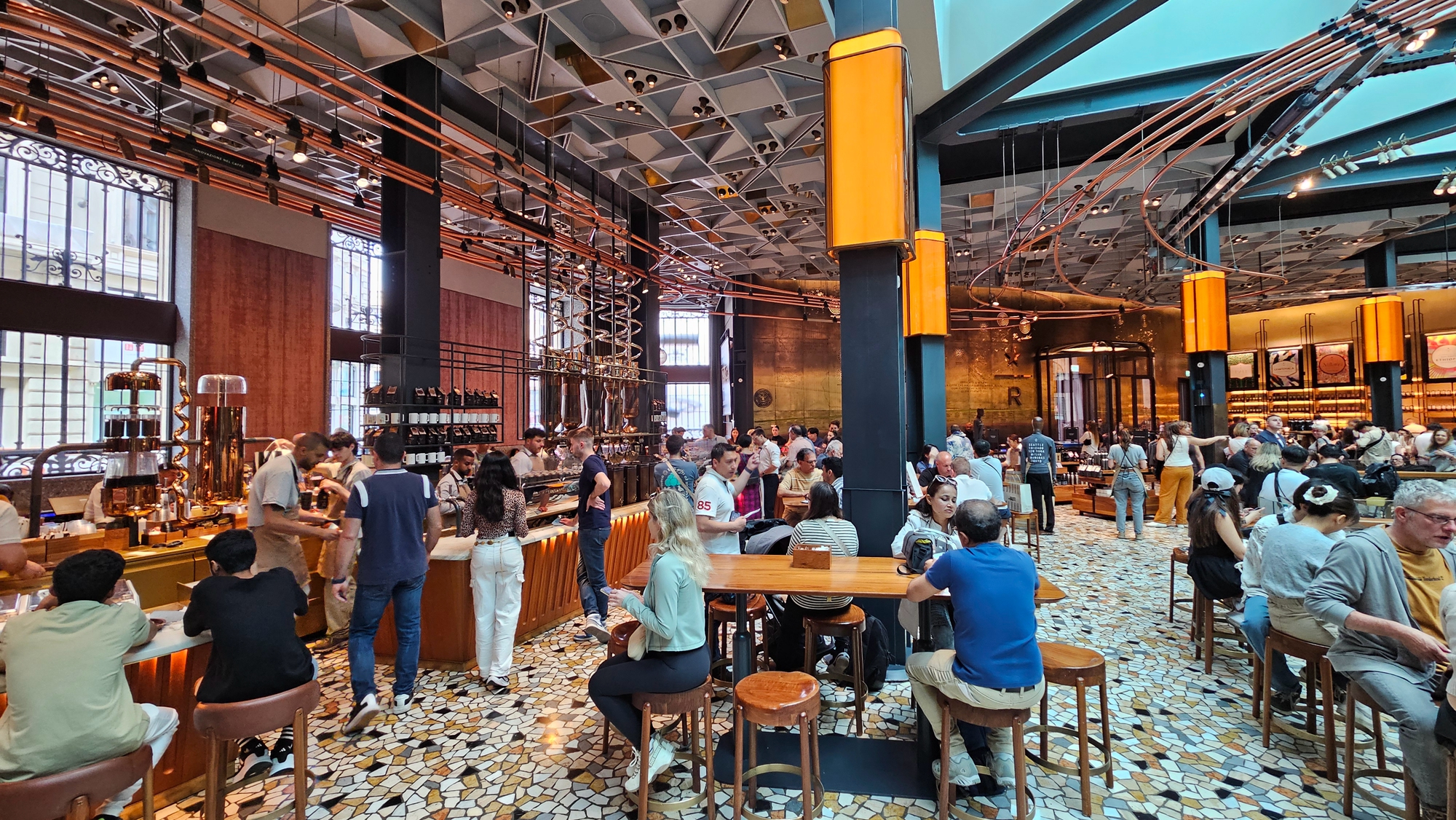 经过精心设计的米兰分店当之无愧地赢得了“全球最美星巴克”的美誉。意大利是咖啡文化的重镇,星巴克于2018年9月才成功进驻意大利,在米兰开设了首家门店,而且是以品牌最顶级的“星巴克臻选咖啡烘焙工坊”(Starbucks Reserve Roastery)店型落脚。