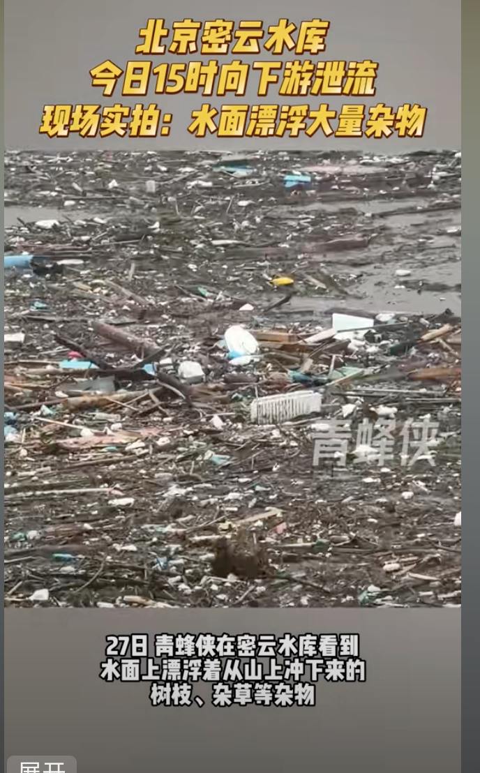 陆媒报导,密云因暴雨和泄洪引发山洪,导致沿途的村庄被淹,居民地区交通中断、通信中断。泄洪的水域漂浮大量杂物。