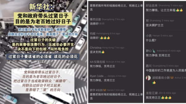 【大纪元2025年08月11日讯】澳大利亚23岁华裔女杨兰兰的巨额财富及神秘背景引发中国大陆全网关注,日前北京因怀柔、密云水灾号召捐款,结果评论区被“杨兰兰捐了多少!”等网民评论洗版。而中共官媒新华社的一篇宣称“过紧日子”的文章评论区也大翻车,网民直批“省下来给兰兰花”。