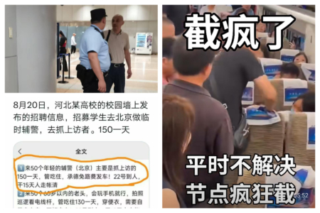【大纪元2025年08月26日讯】(大纪元记者李熙采访报导)“9.3阅兵”临近,北京维安可谓滴水不漏,天安门广场四周三步一岗,地铁车厢内每一个出入门都部署一警一犬。为严防访民进京,各地访民大部分被以各种方式严控在当地。