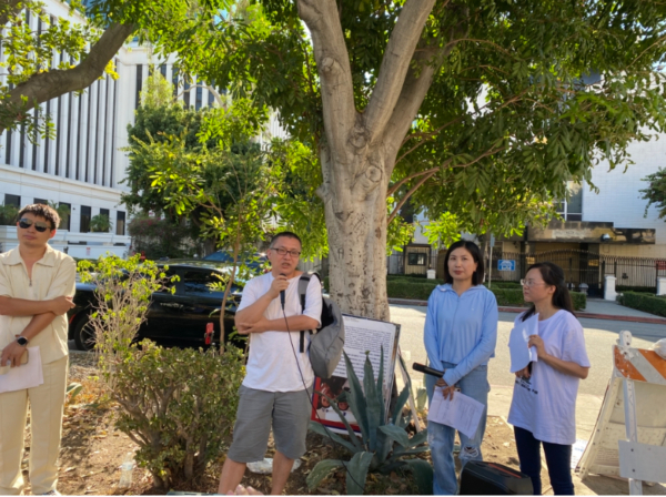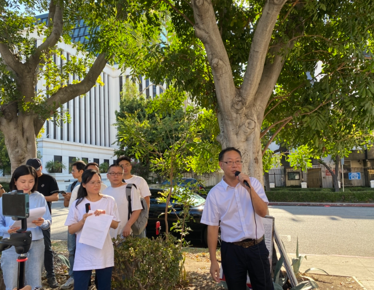 8月30日(周六)下午,北美华人举办“全球审判中共九宗罪”活动,以抗议中共暴政。大洛杉矶和橙县地区六七十名华人在中领馆前集会,其中包括中国著名人权律师陈光诚、疑被绑架后活摘器官的高中生胡鑫宇一案的代理律师游飞翥、避难美国的中国网红律师周君红、前北京律师梁少华,及流亡美国的多位中国民营企业家。身在加拿大的民主中国阵线副主席盛雪在线上参加了集会。