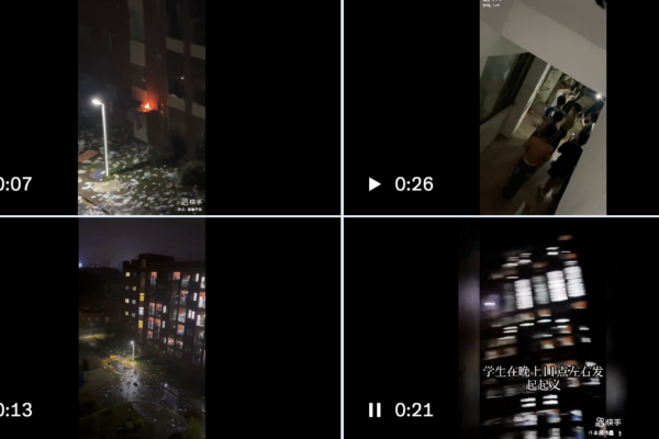 这位不愿具名的学生说,当晚很多同学手举着开亮的手机隔着窗户向外晃动。社交媒体“快手”视频显示,有学生将课桌椅从宿舍抛下。他说:“大家觉得交了钱,却失去了最基本的通讯自由。”