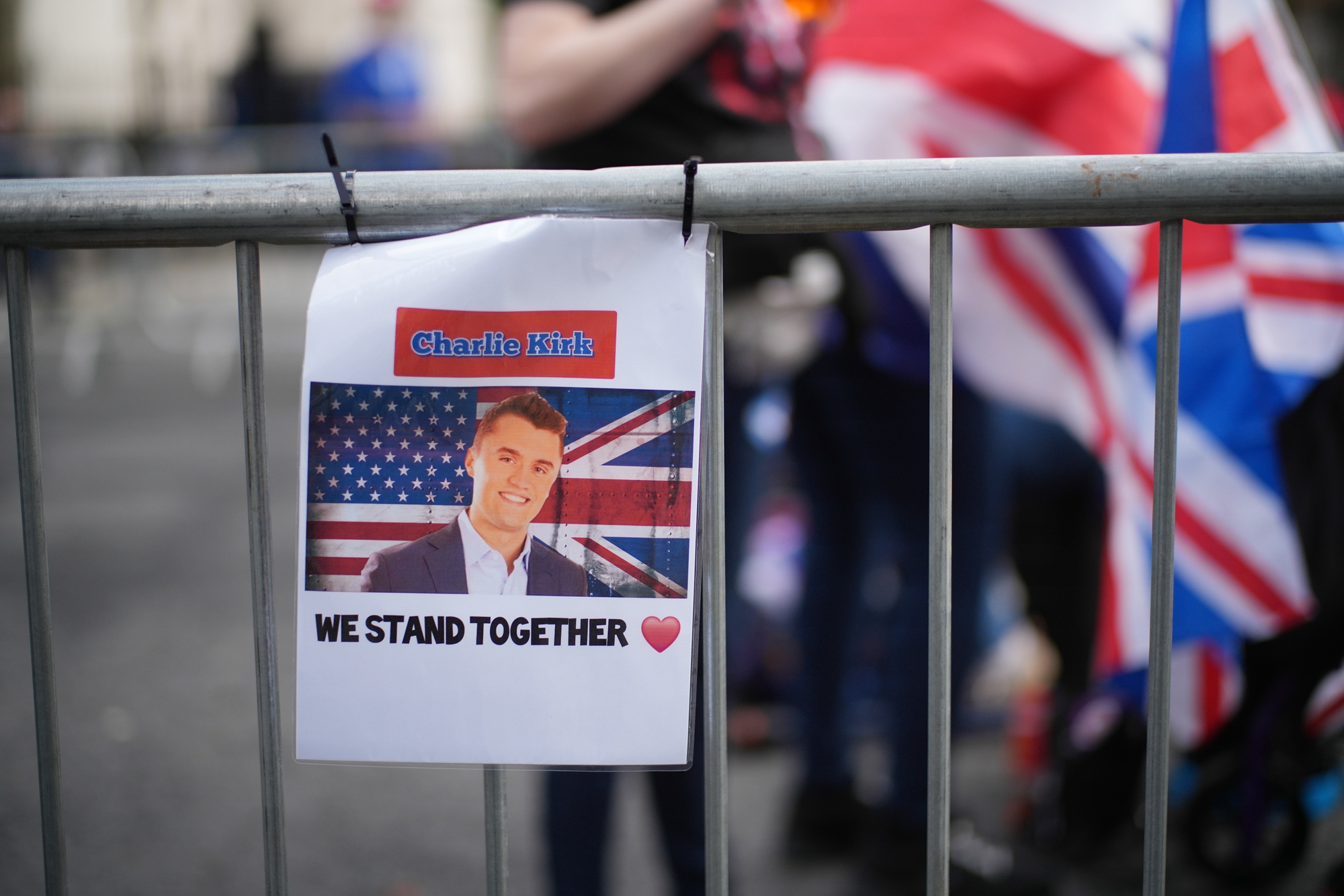 【大纪元2025年09月14日讯】(大纪元记者张雨霏综合报导)周六(9月13日),英国伦敦举行了一场名为“团结王国”(Unite the Kingdom)的大规模游行活动,其诉求包括捍卫言论自由、抗议左翼政府的移民政策等。与会者同时向在周三(9月10日)遇害的美国保守派活动家查理‧柯克(Charlie Kirk)致敬,很多人高举柯克的大幅照片、相框或支持他的标语。