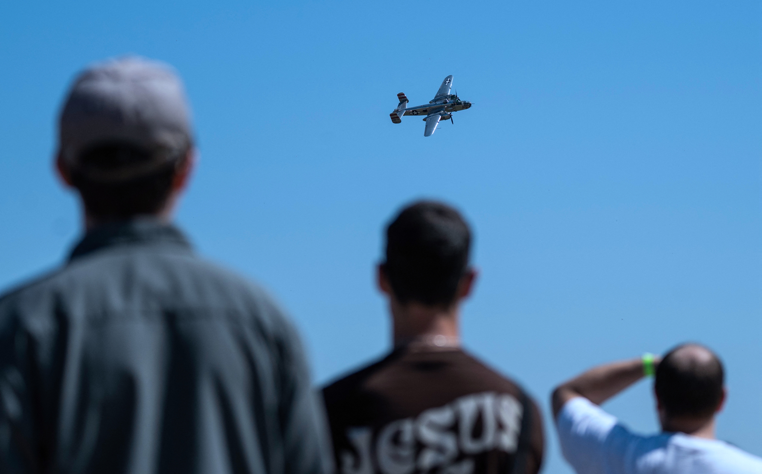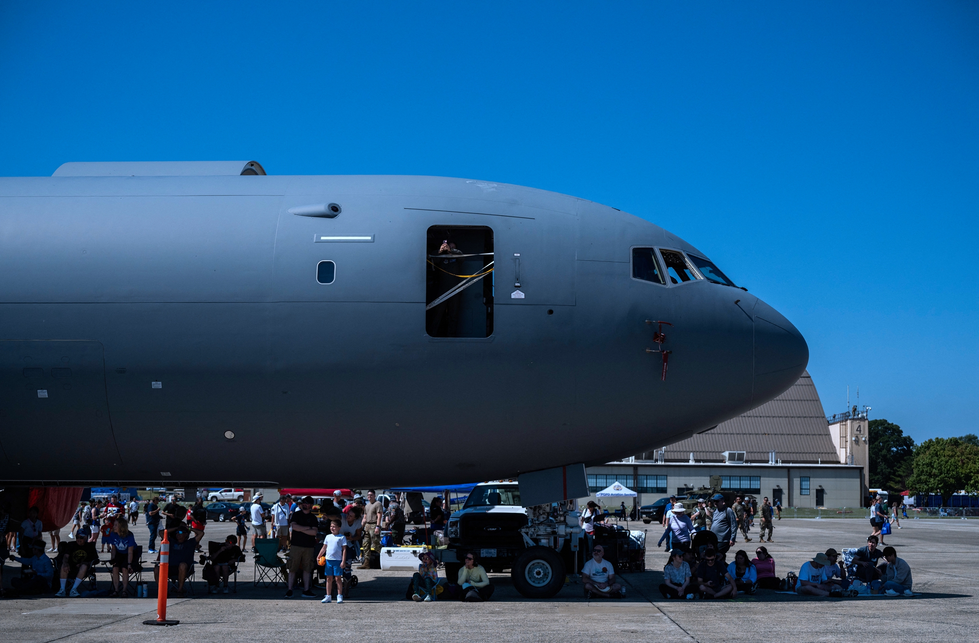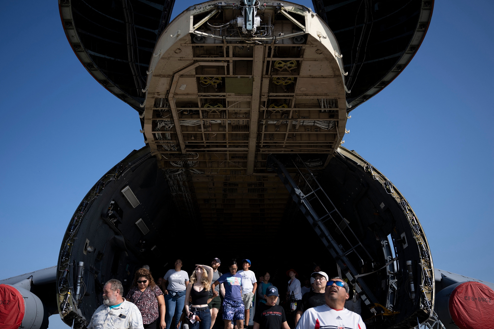 静态展示包括F-15“鹰式”战斗机、C-17新世代运输机、B-1“枪骑兵”战略轰炸机、“同温层堡垒”战略轰炸机,以及阿帕奇武装直升机等。停机坪上的每架飞机都是敞开机门,欢迎民众进入参观。