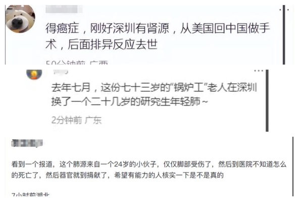 网友纷纷发帖质疑“老杨”是特权人物:“我点了个外卖,半天都没送到,别人点了新鲜的肺,33分钟就送到了!”“73岁,一般家庭或是中等家庭都是拉回家等了。只有有权有钱的家庭能做这个手术,并在效率上做到极致。”