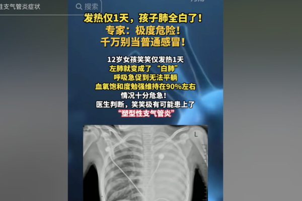报导援引医生称,孩子感冒咳嗽后出现持续发热、喘息加重、呼吸急促、胸闷胸痛、胸片或CT提示“肺不张”“肺实变”,尤其是症状在短时间内快速恶化时,切勿当作普通感冒,赶紧就医。