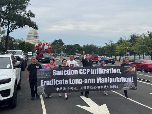 9月29日,民主党同仁汇聚在华盛顿,在国会到白宫的街道上游行抗议中共。一百多辆警车为他们开道,保护他们的安全。