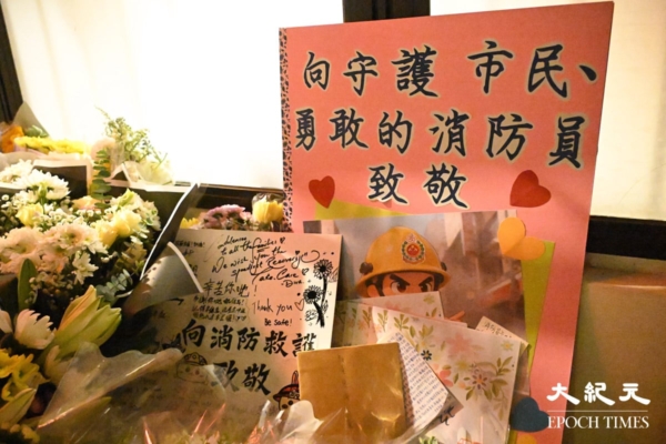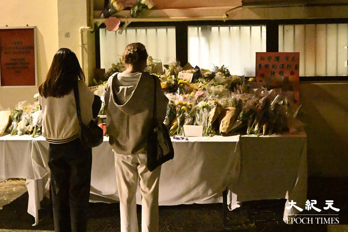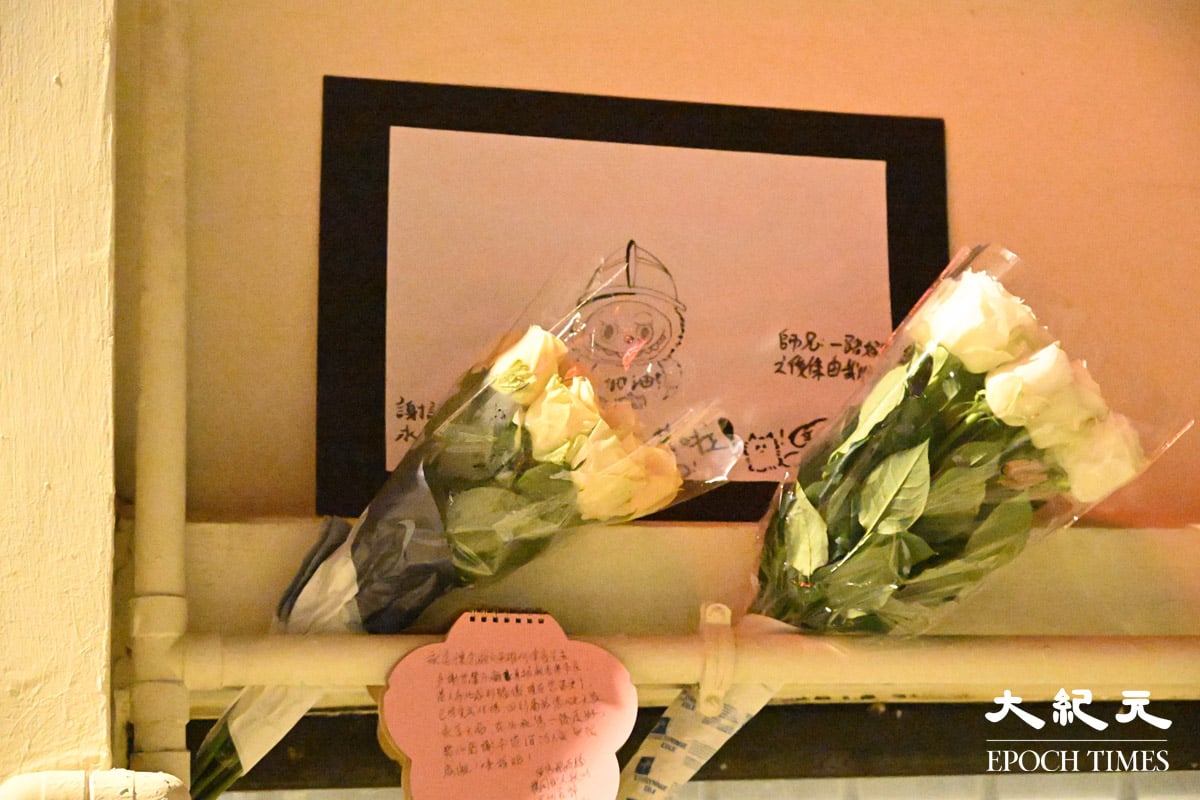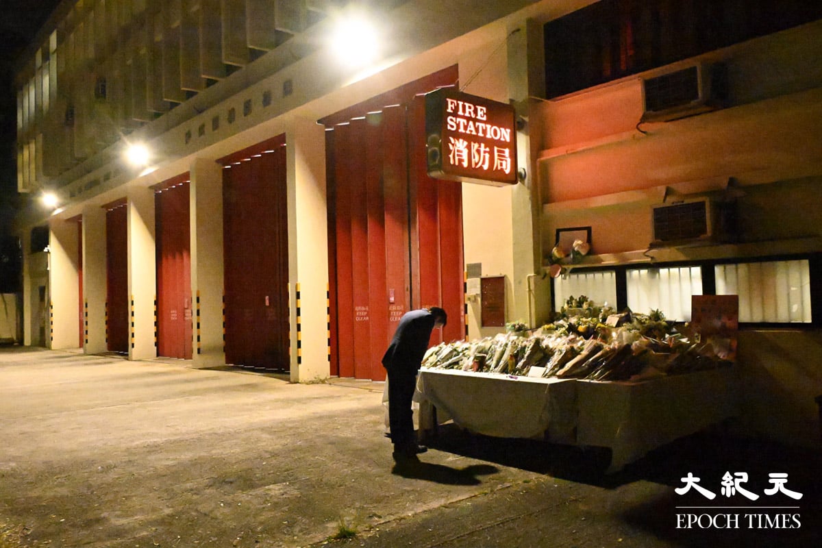 在大埔宏福苑救火期间,37岁的消防员何伟豪殉职。他生前驻守的沙田消防局周六(29日)下半旗,不少市民周六到消防局外献花及送上心意卡。消防处正为何伟豪的家人募捐,接受公众捐款。