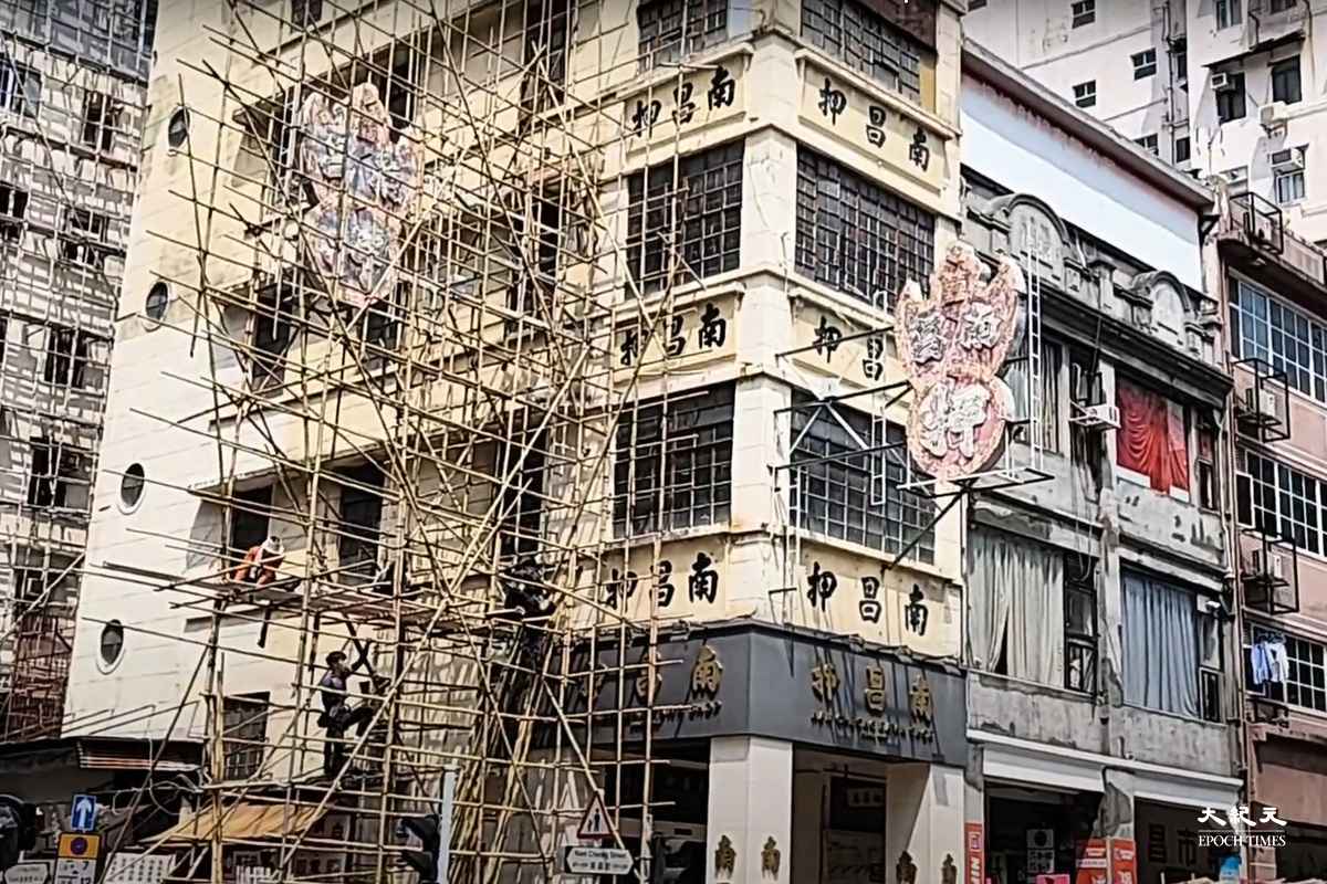 香港深水埗某大楼外搭建的竹棚,与本文无关。(李明恩/大纪元)