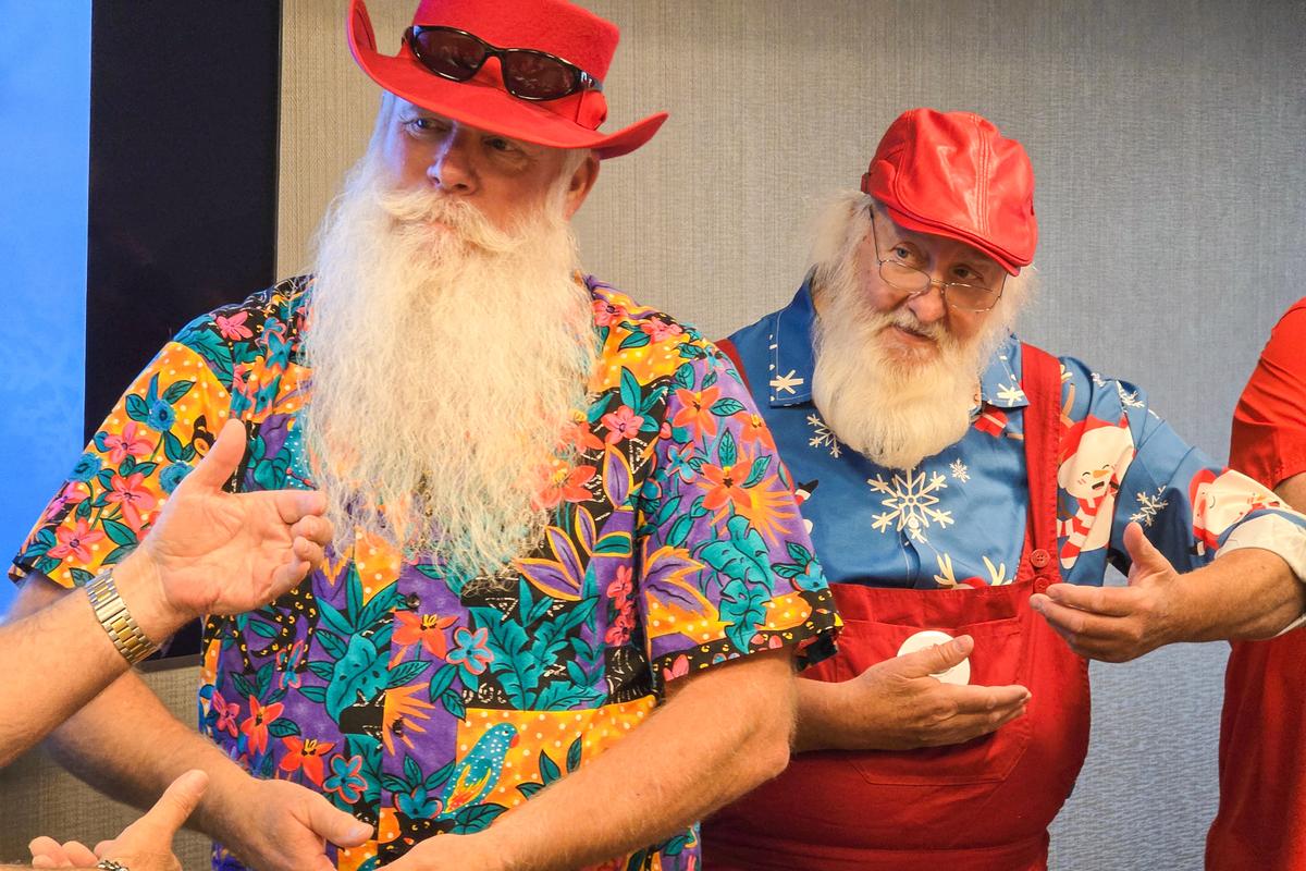 艾伦‧康威尔(Allen Cornwell)今年56岁,是“真胡子圣诞老人兄弟会”(Fraternal Order of Real Bearded Santas)的会长,他从加利福尼亚州的丰塔纳(Fontana)来到亚利桑那州的凤凰城,参加5月3日的圣诞老人课程。