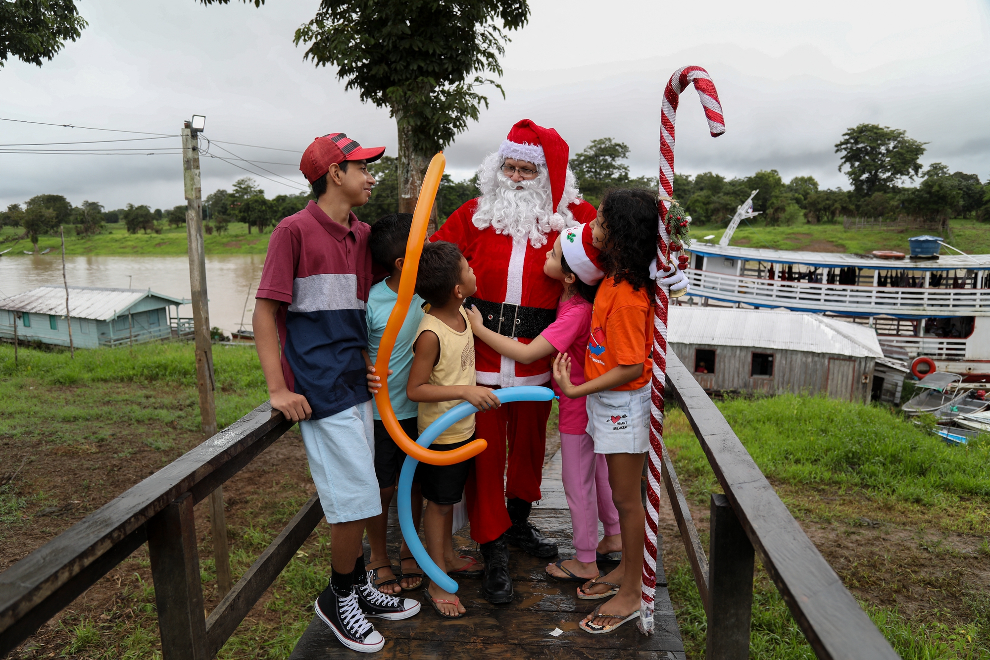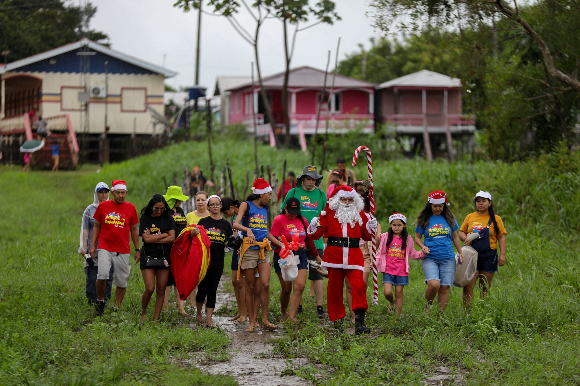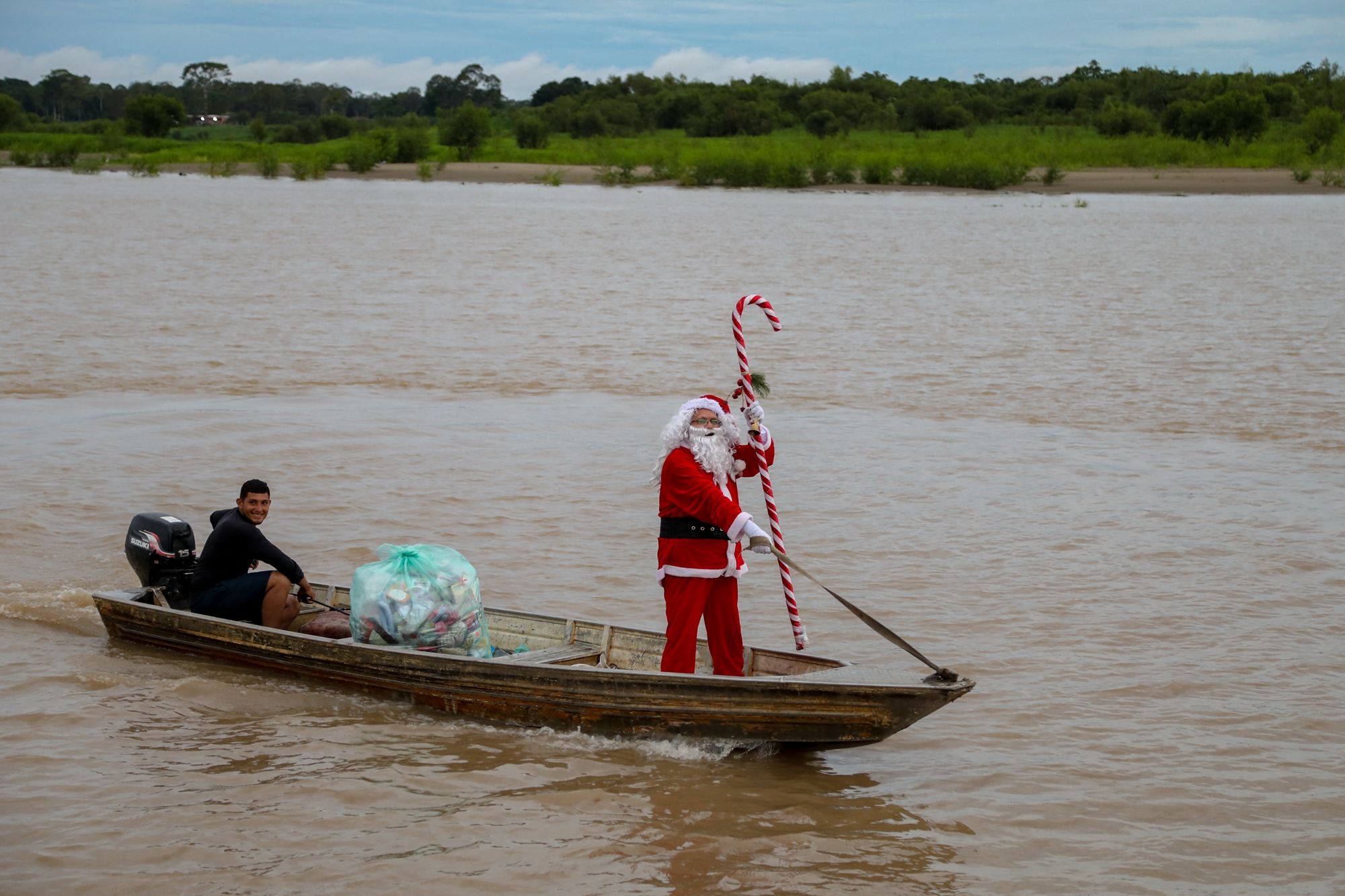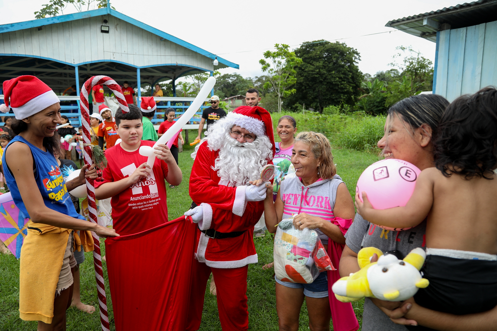 该活动是由巴西慈善团队Friends of Santa Claus主办,该机构自1998年以来,每年都会在圣诞节前夕,安排穿上传统圣诞服装的圣诞老人,在一群志愿者的协助下,为亚马逊雨林农村社区的儿童派发圣诞礼物。