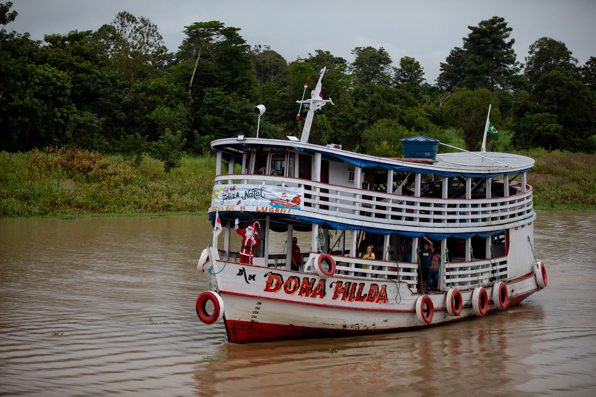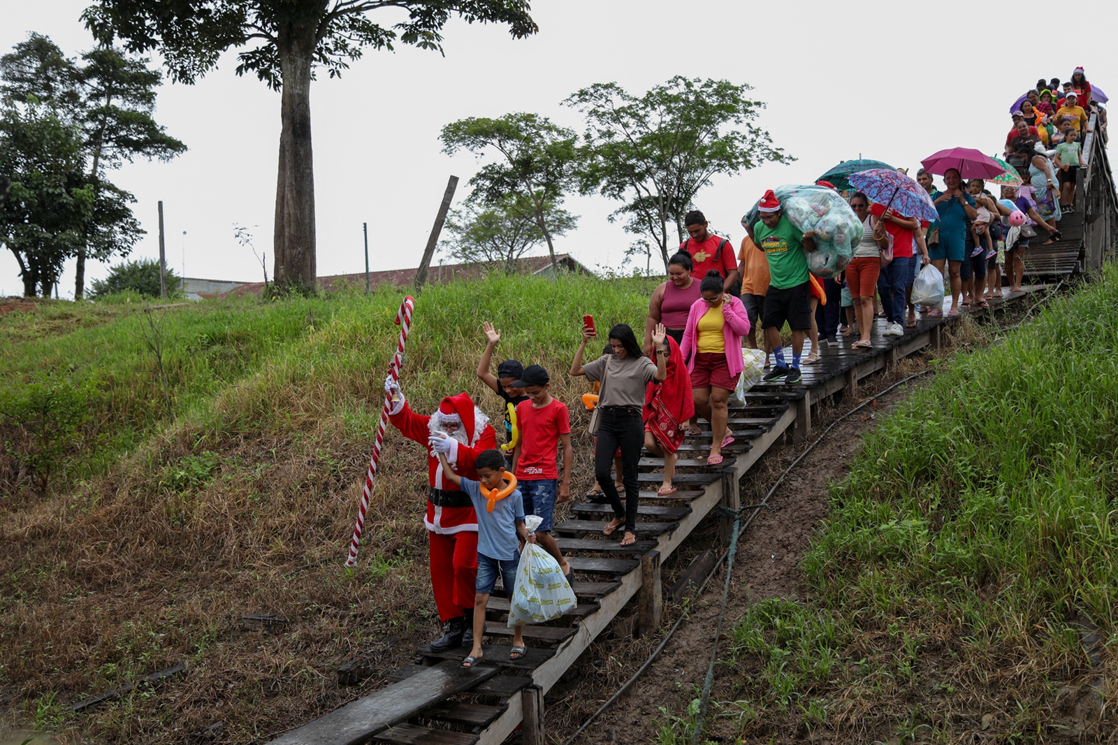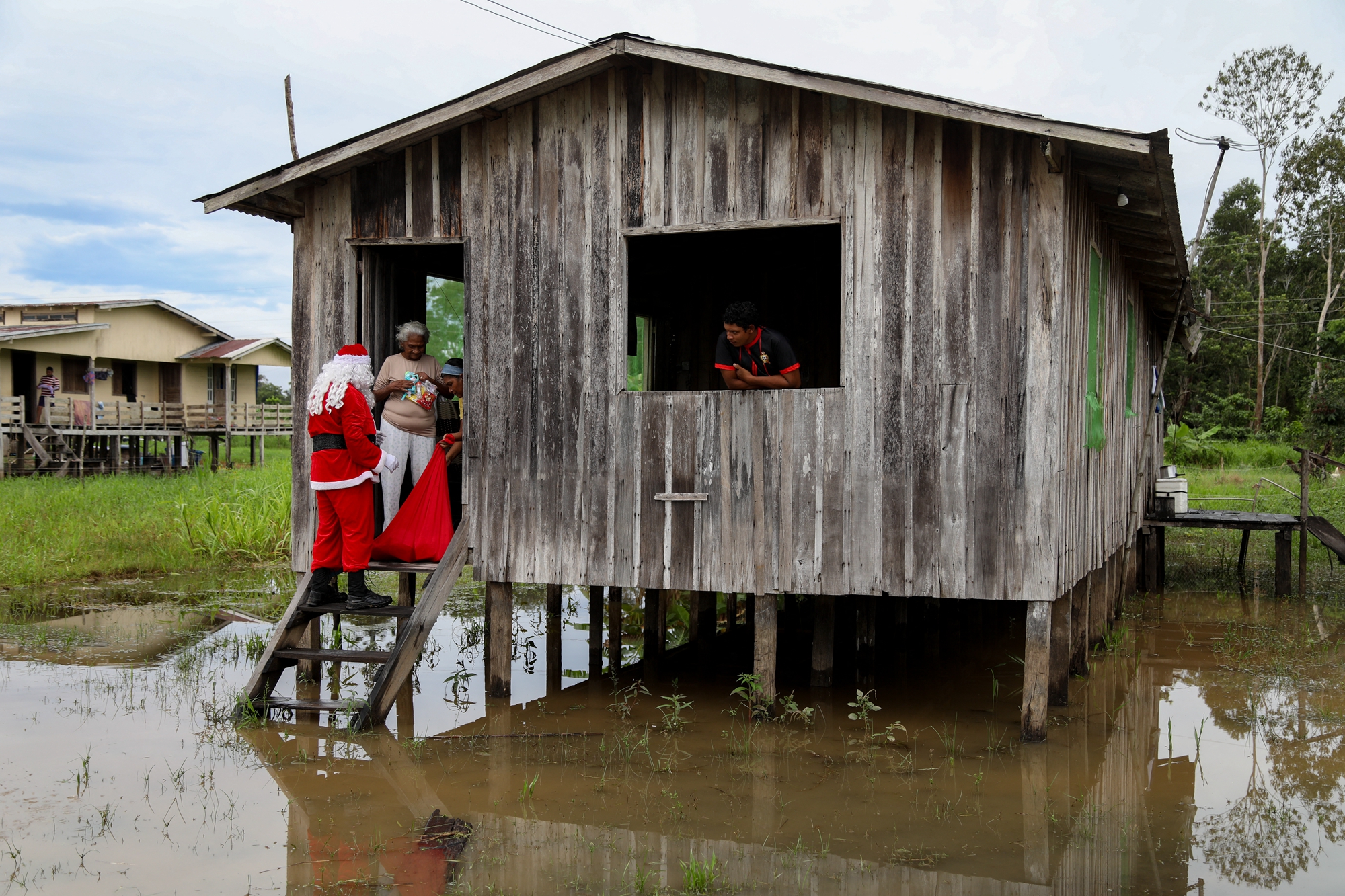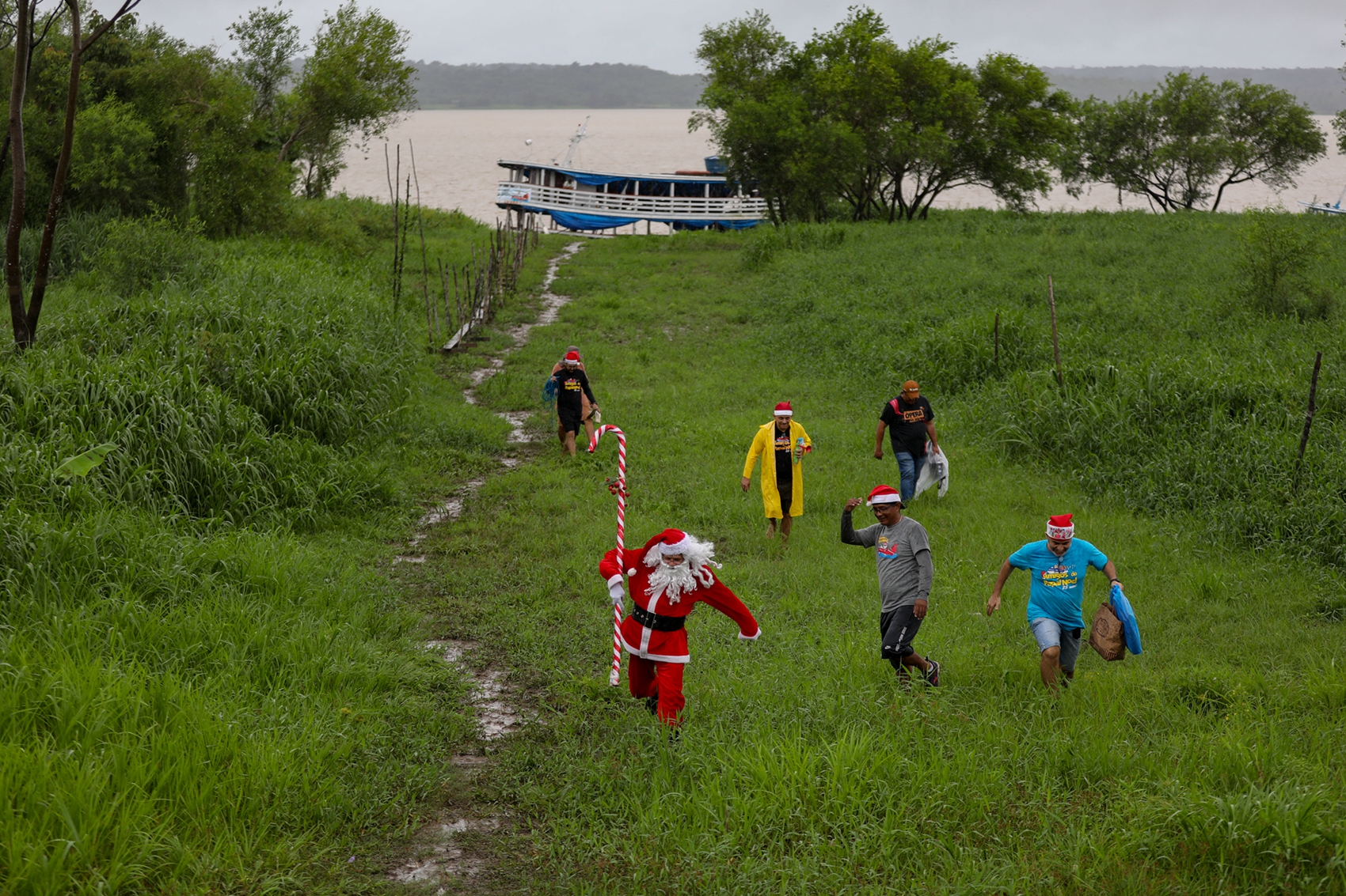 该活动是由巴西慈善团队Friends of Santa Claus主办,该机构自1998年以来,每年都会在圣诞节前夕,安排穿上传统圣诞服装的圣诞老人,在一群志愿者的协助下,为亚马逊雨林农村社区的儿童派发圣诞礼物。