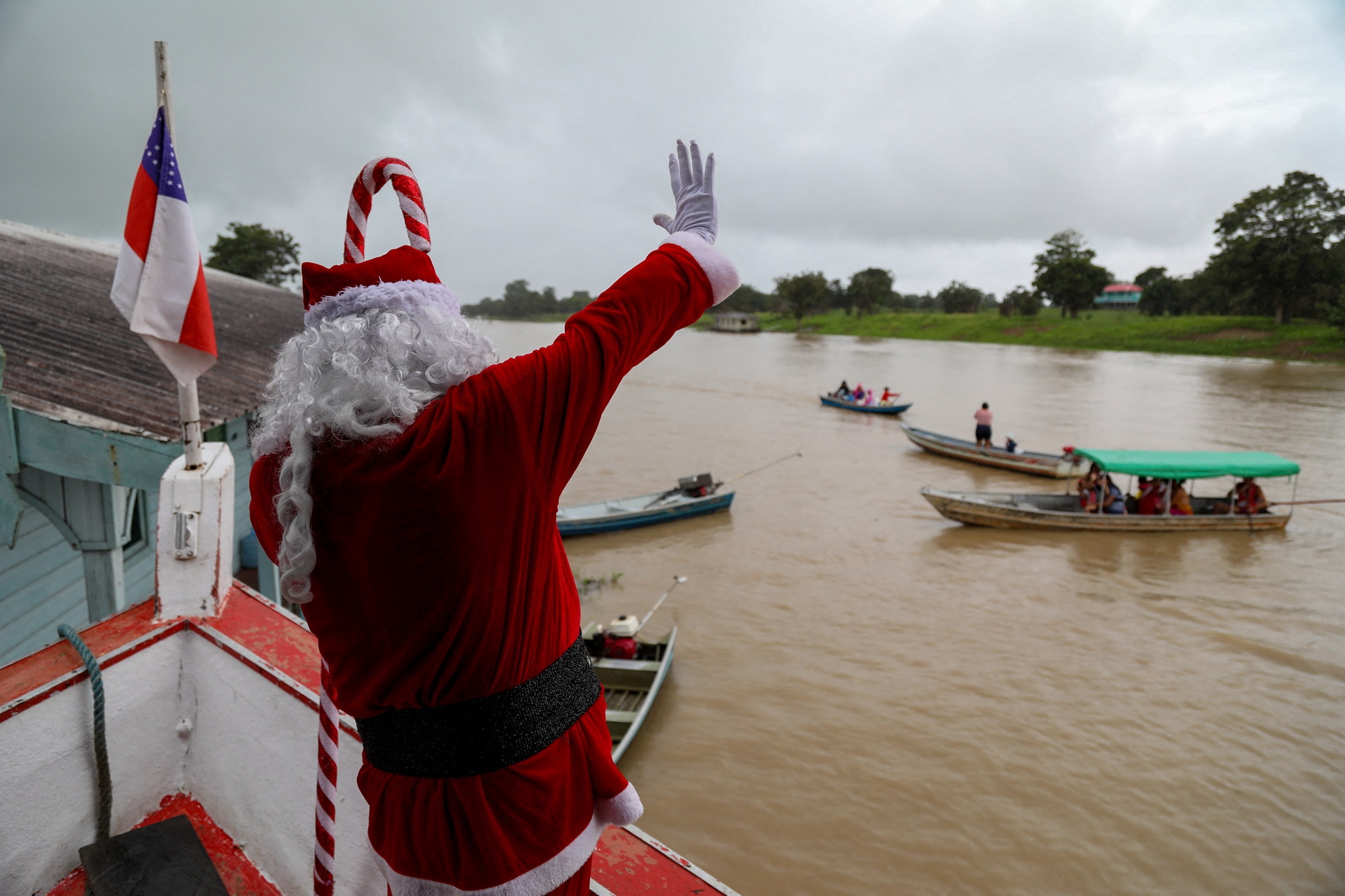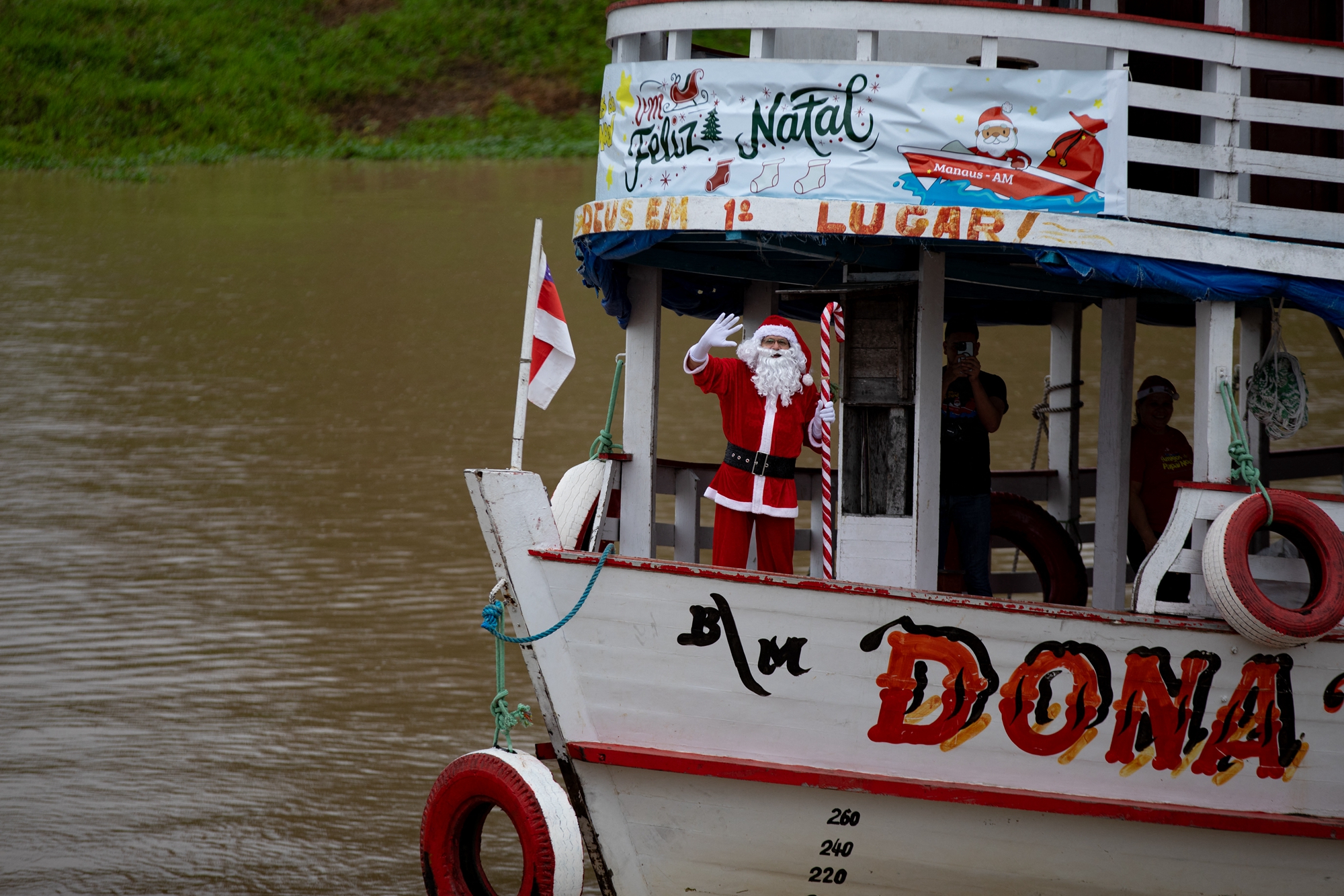 【大纪元2025年12月22日讯】(大纪元记者张雨霏综合报导)上周六(12月20日),在巴西亚马逊州的一个偏远河流社区,圣诞老人不是驾驶驯鹿雪橇,而是乘船沿着亚马逊支流内格罗河缓缓进入当地,给那里的儿童送上礼物和节日祝福。