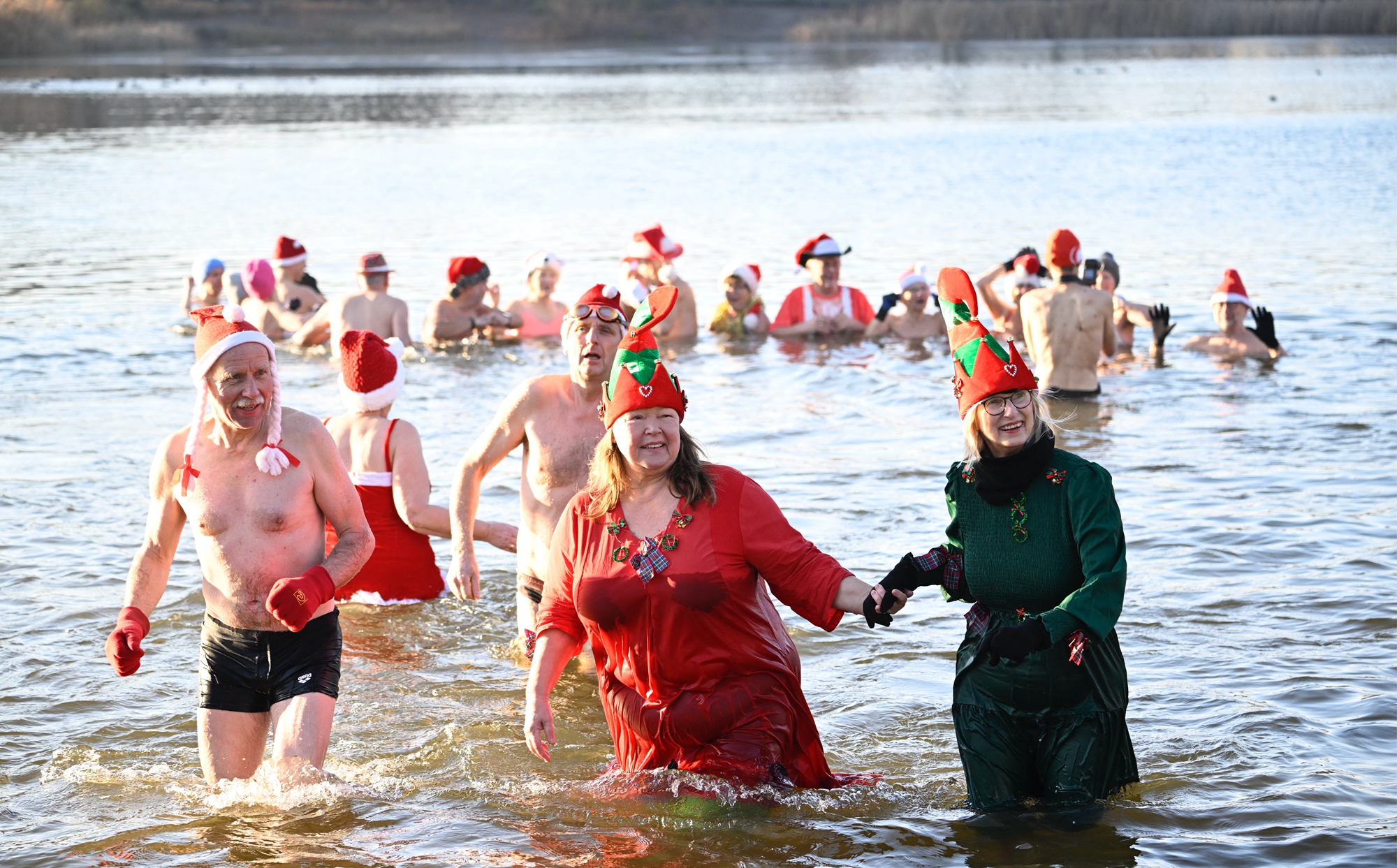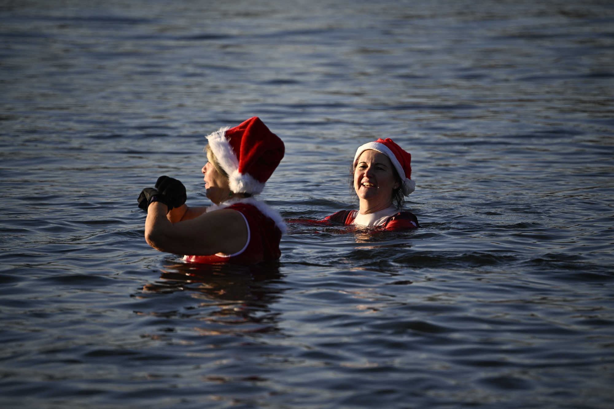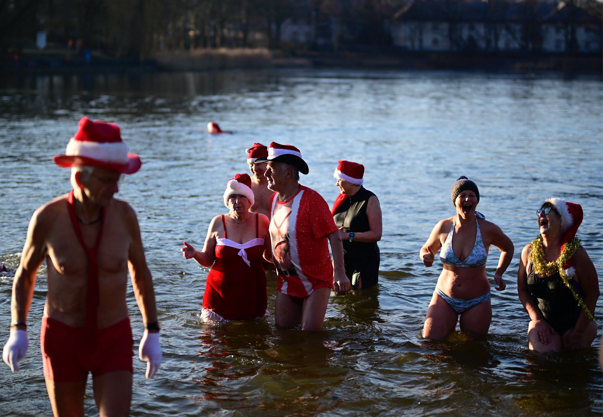 周四清晨,德国一群戴着红色圣诞帽的冬泳爱好者在零下8摄氏度(17.6华氏度)的严寒中,跳入柏林的奥兰克湖(Orankesee)冬泳,延续这项已有40年历史的传统。冬泳结束后,大家聚在一起合唱圣诞颂歌,为活动画上温馨句号。