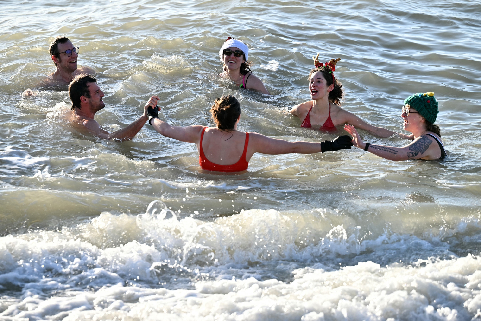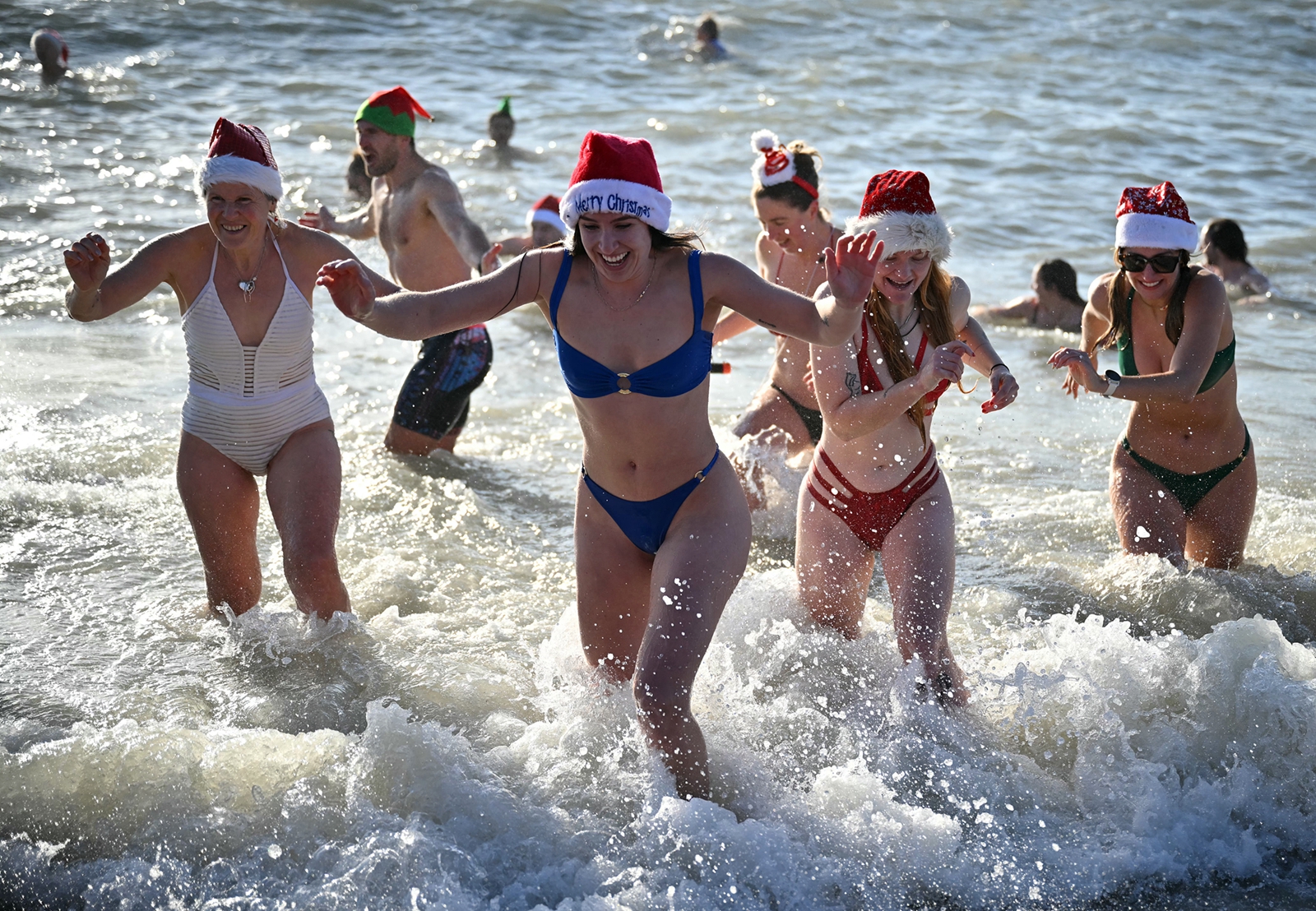 与此同时,英国也有大批民众聚集到英格兰南部著名海滨城市布莱顿(Brighton)的标志性景点——布莱顿海滩(Brighton Beach),参加一年一度的布莱顿圣诞节游泳活动(Brighton Christmas Day Dip)。该活动历史非常悠久,始于19世纪60年代,每年都会吸引成百上千人热情参与。