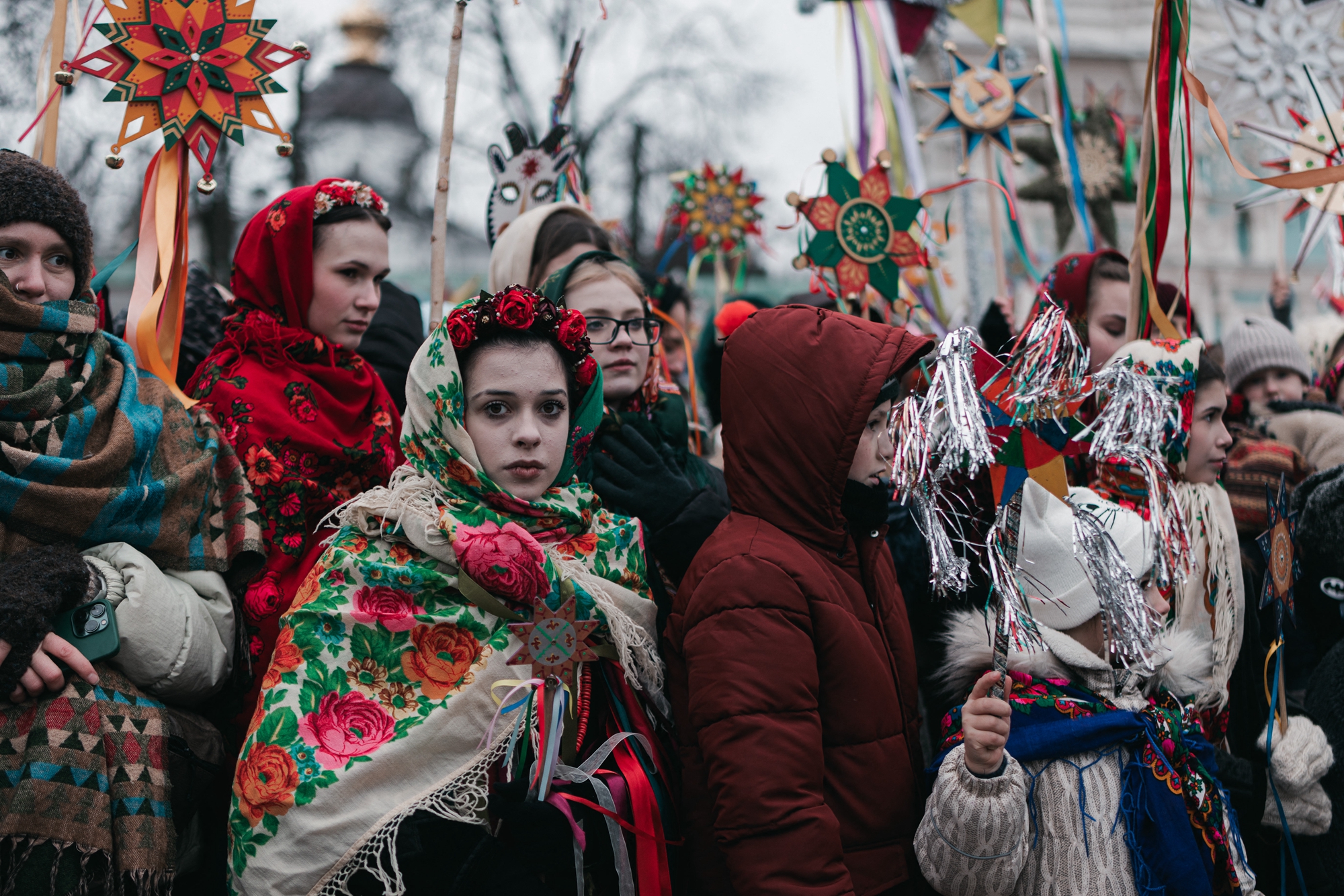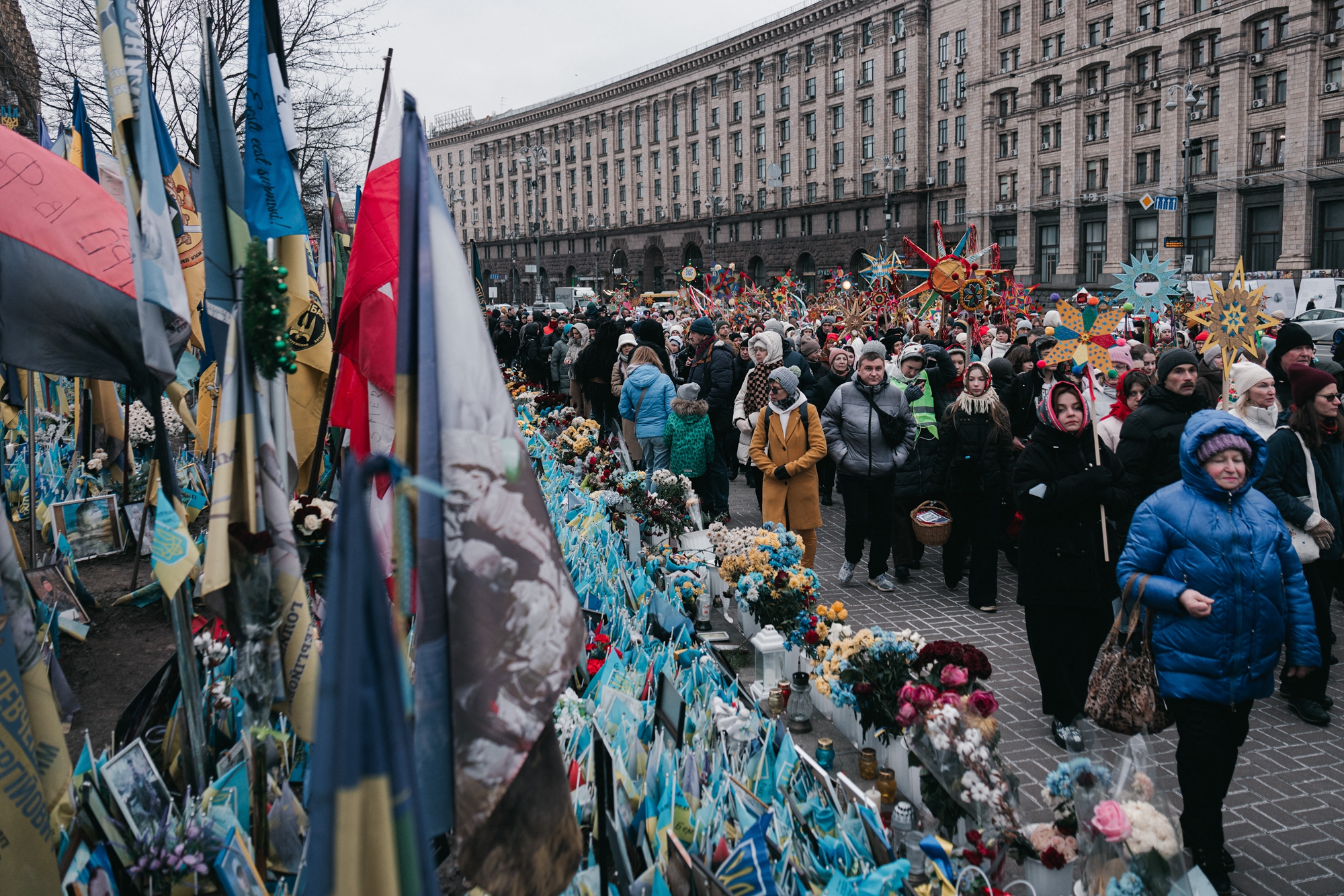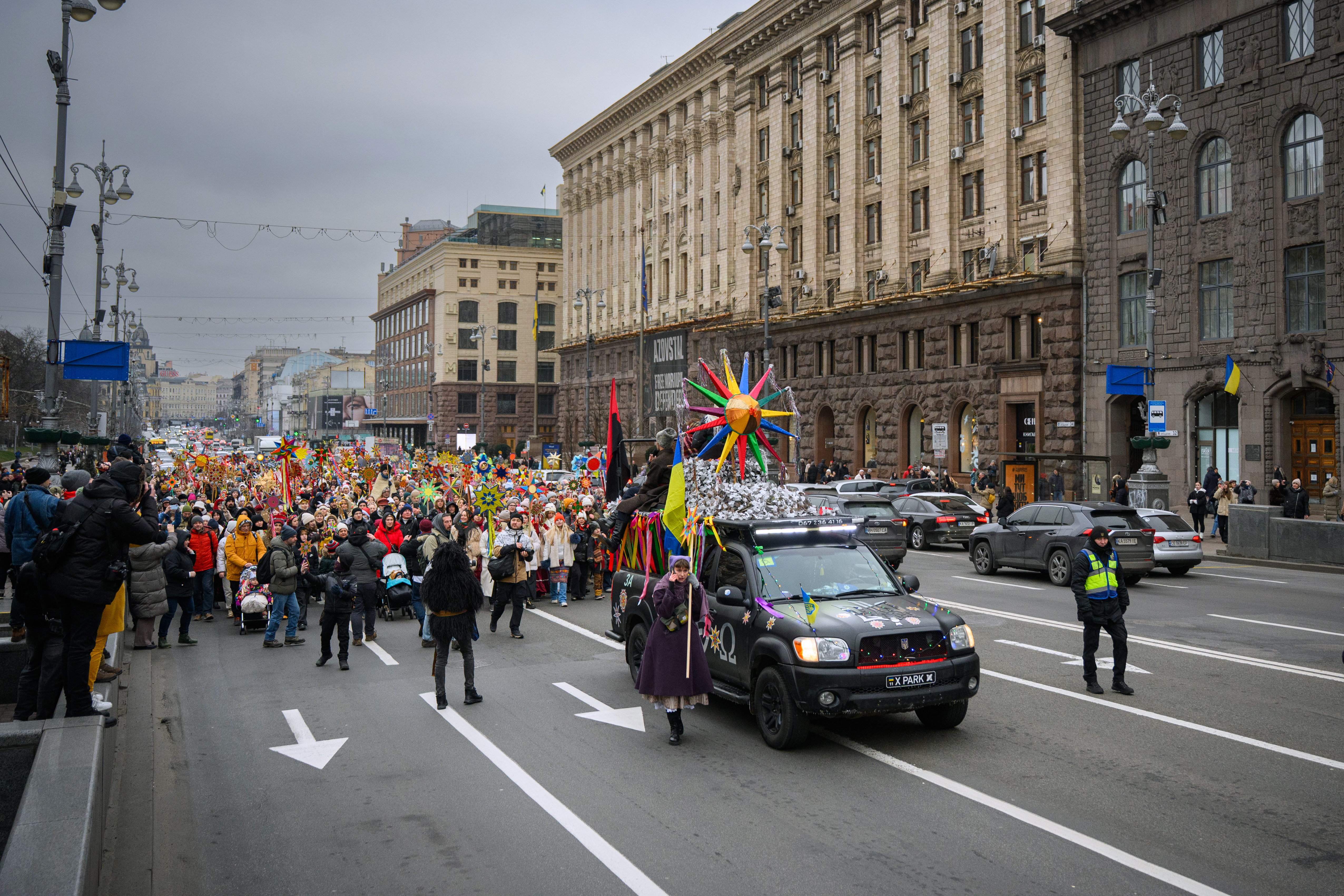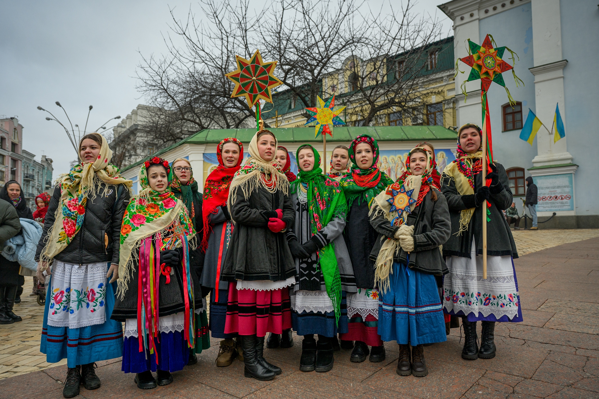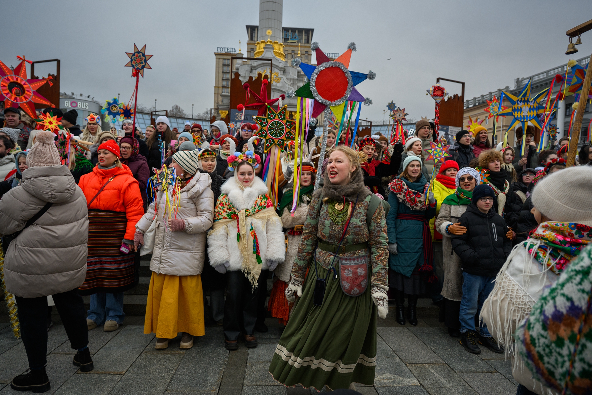 在乌克兰首都基辅,数以千计的民众身穿传统服饰,手持象征圣诞的装饰星走上街头。圣诞星是乌克兰圣诞传统的重要象征,部分参与者将阵亡乌克兰士兵的名字贴在圣诞星上,以此寄托哀思、纪念逝者。人们合唱颂歌,在节日中表达对战争终结、国家和平与未来繁荣的期盼。