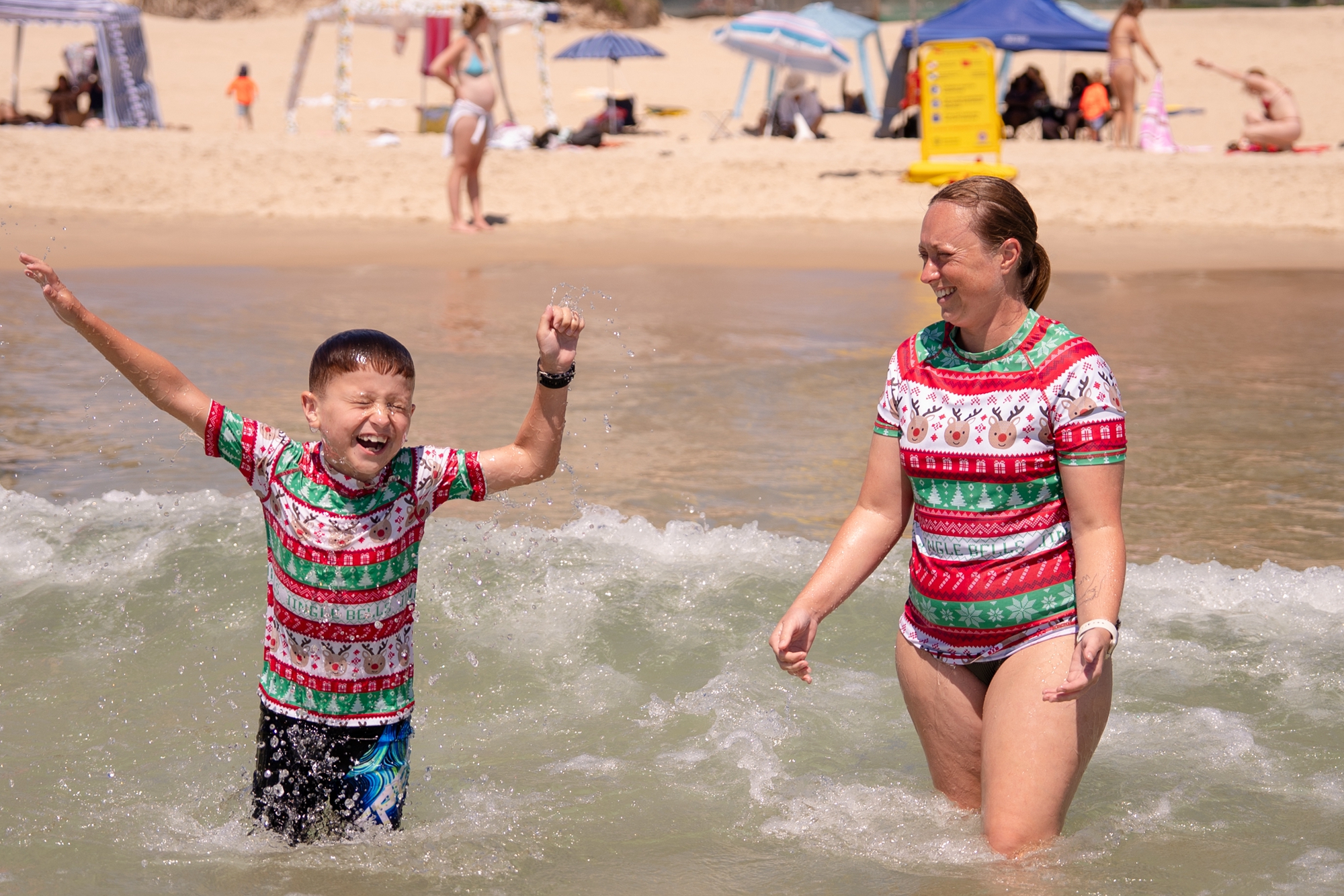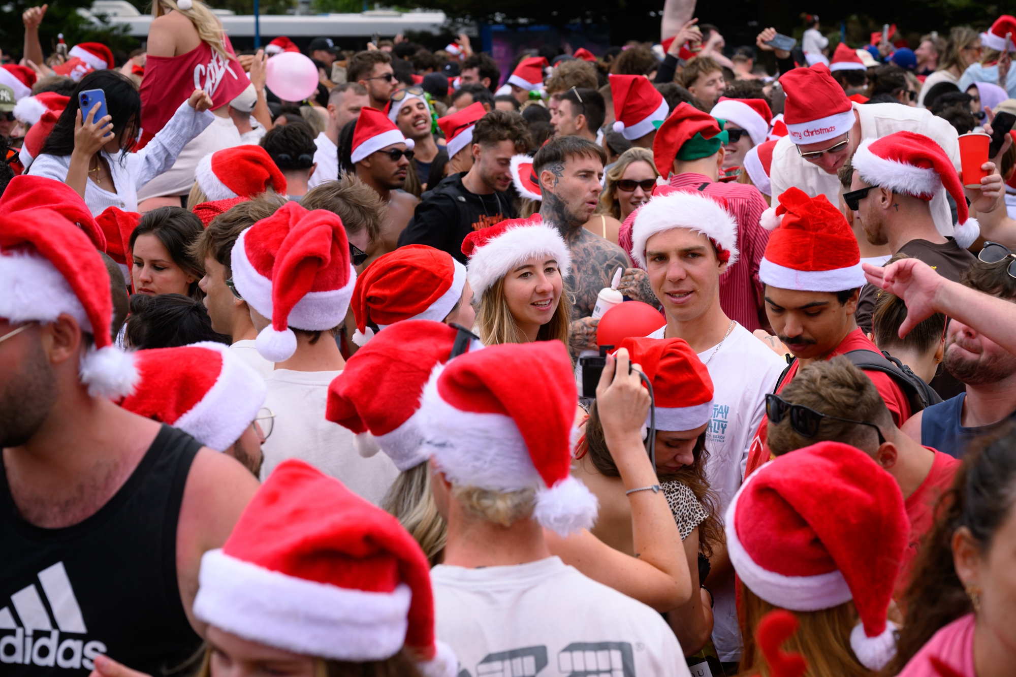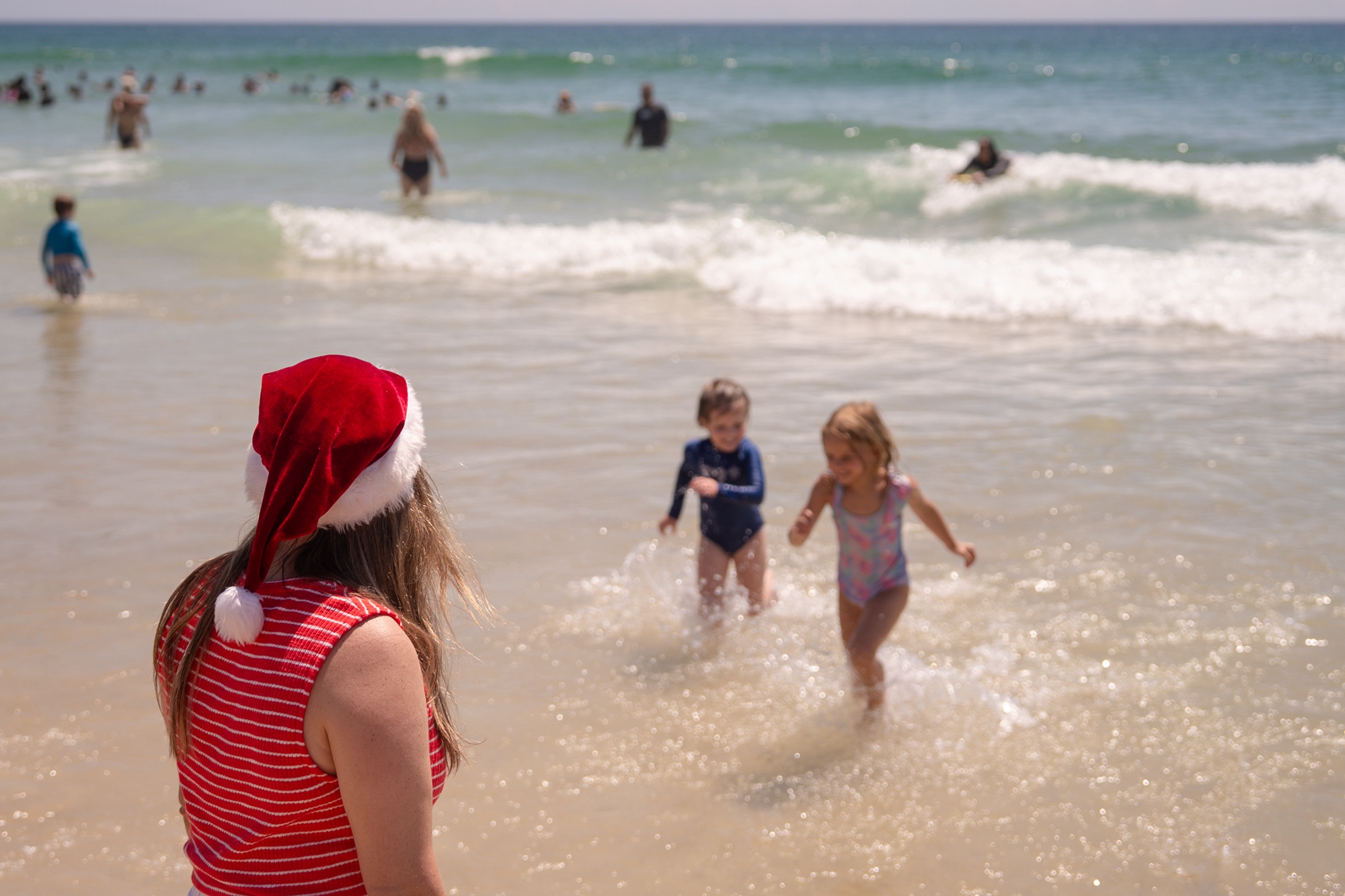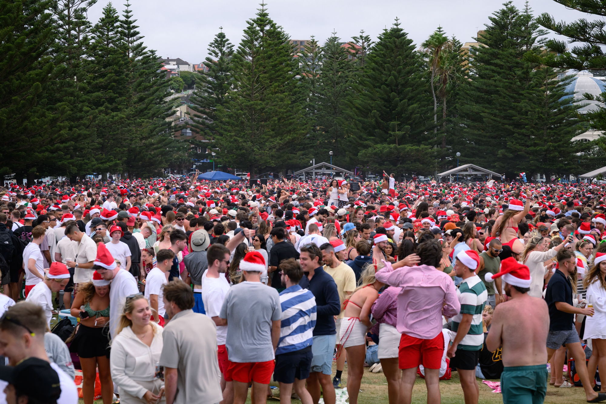 至于南半球的澳大利亚,则有不少民众前往沙滩庆祝,身穿泳衣、头戴圣诞帽享受太阳和微风,其中包括前不久刚刚发生恐袭案的知名度假和冲浪胜地邦岱海滩(Bondi Beach)。