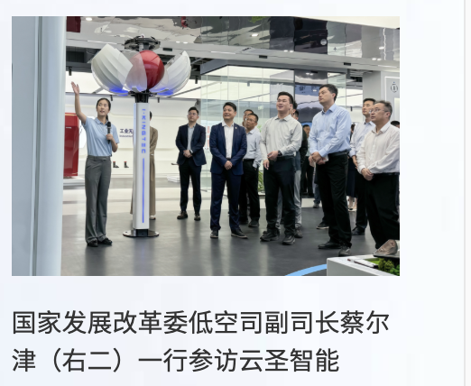 大纪元记者可以搜到“云圣智能”官网上有又被调到发改委低空经济发展司副司长蔡尔津参观“云圣智能”的图文。该图片新闻没提及蔡尔津到访时间,但“云圣智能”2024年底才成立。这也是蔡尔津照片首次曝光。