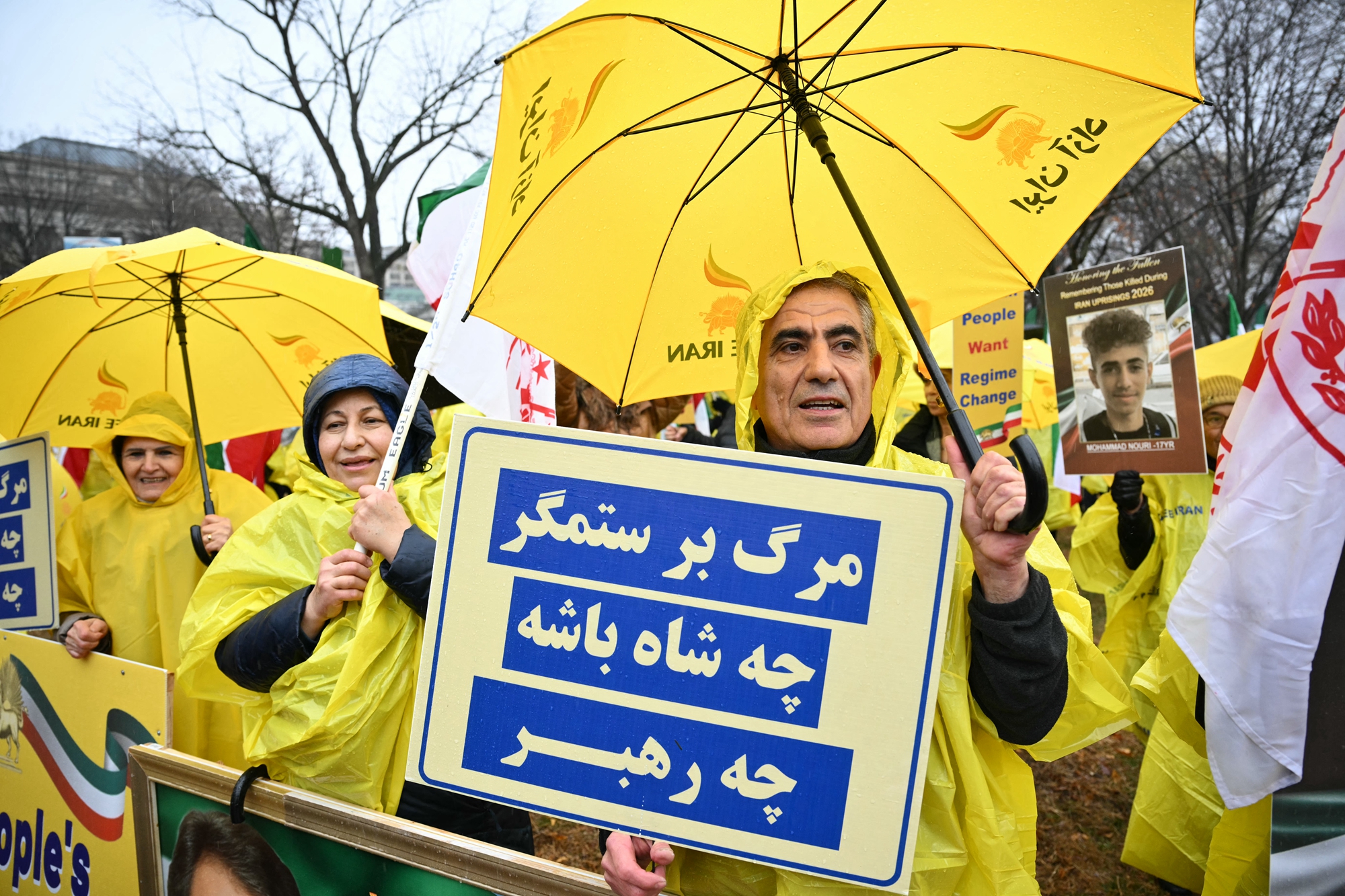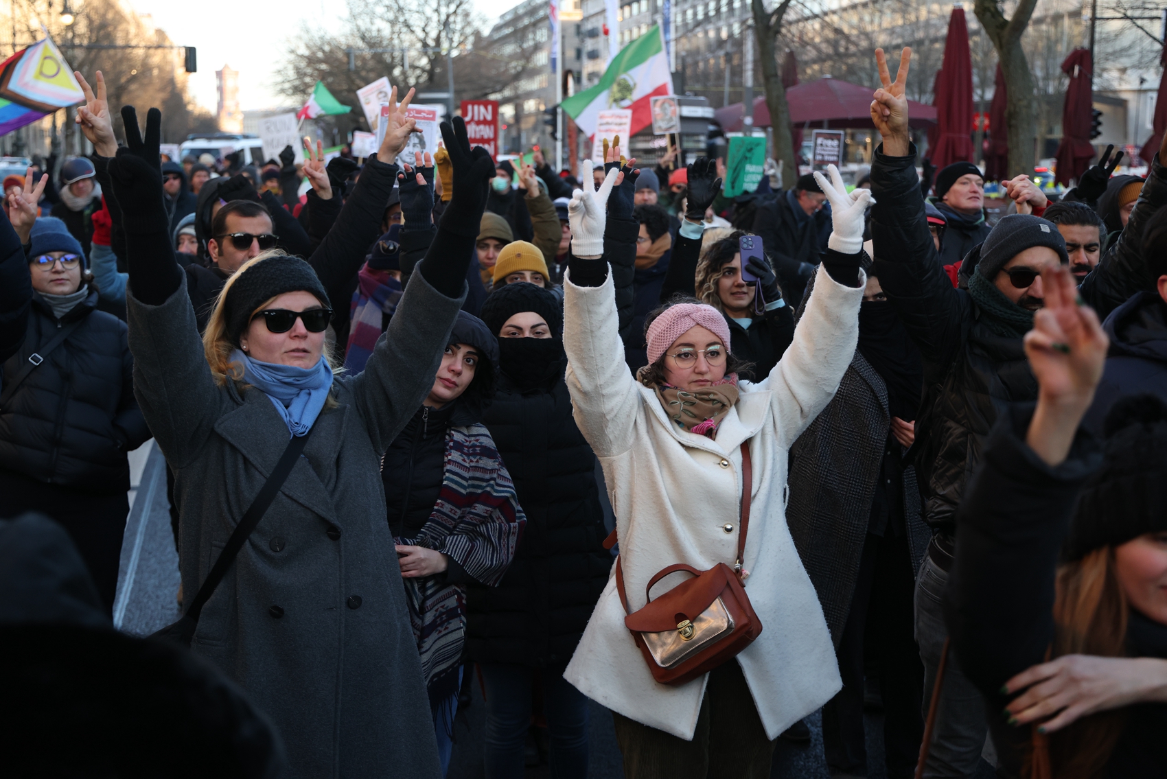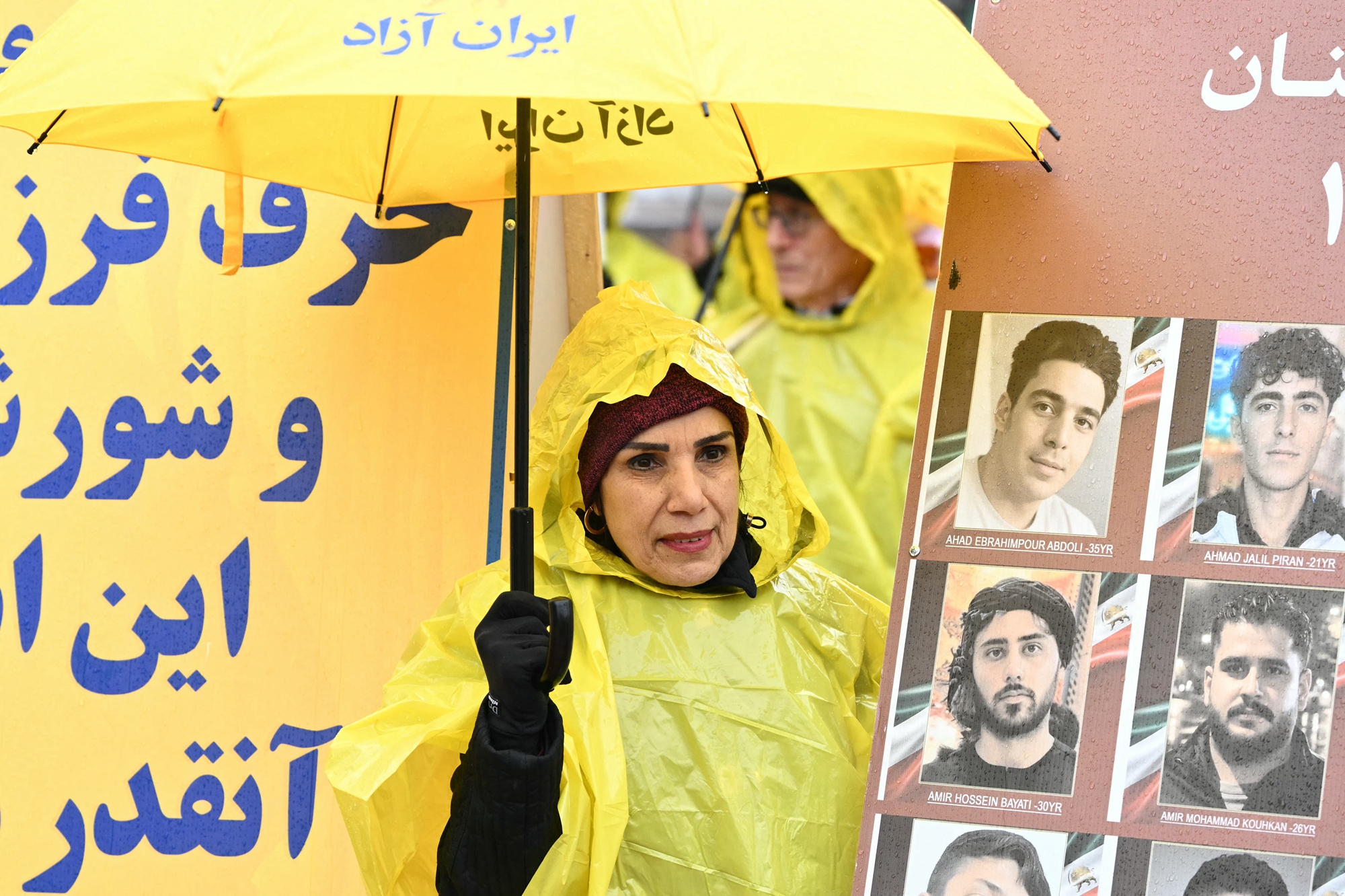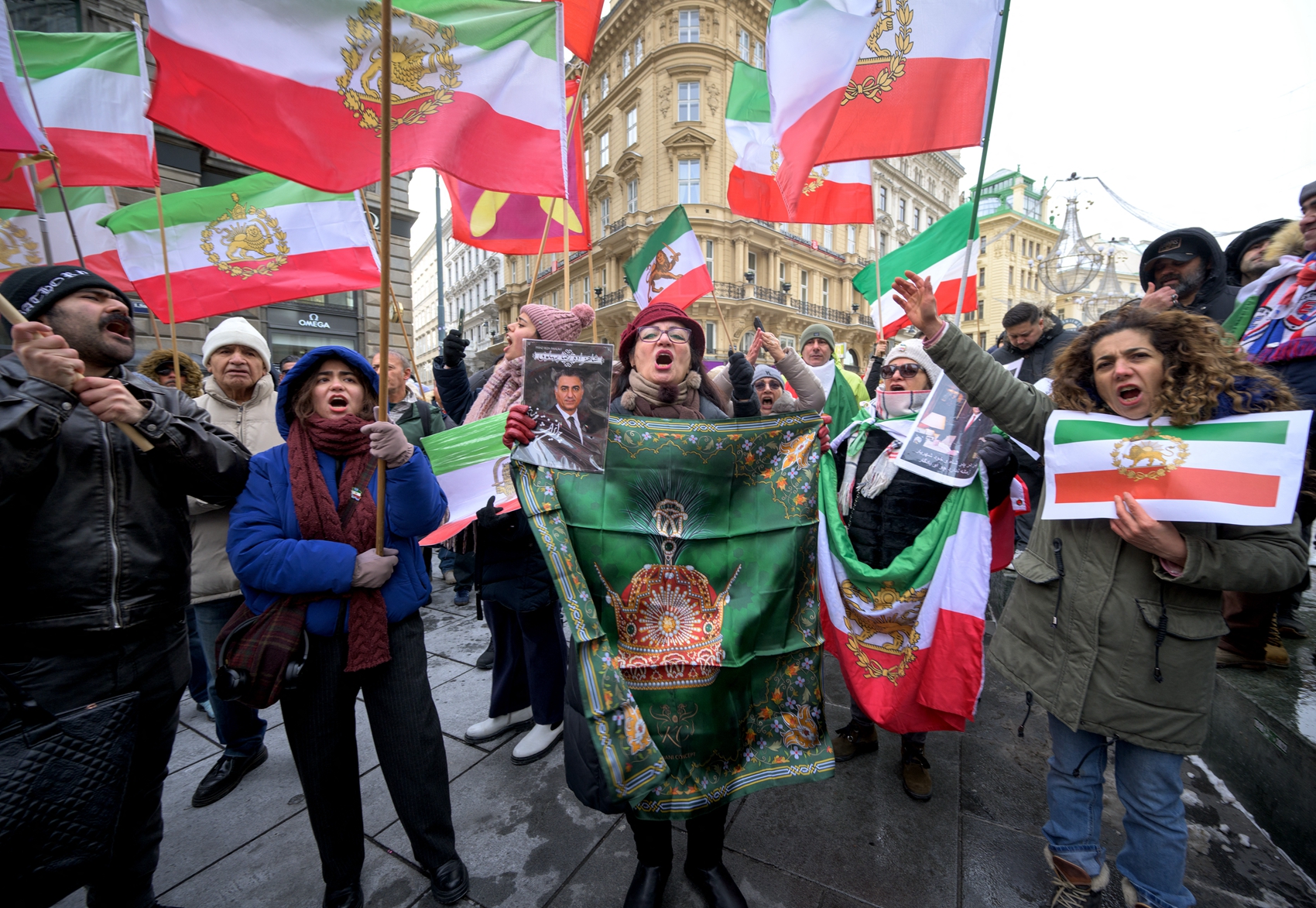 在巴黎,超过2000人挥舞着1979年伊朗革命之前的狮子太阳旗,在示威现场高喊“拒绝恐怖分子的伊朗伊斯兰共和国(Islamic Republic of Iran)”。