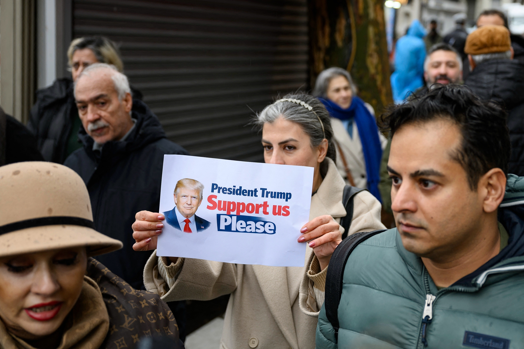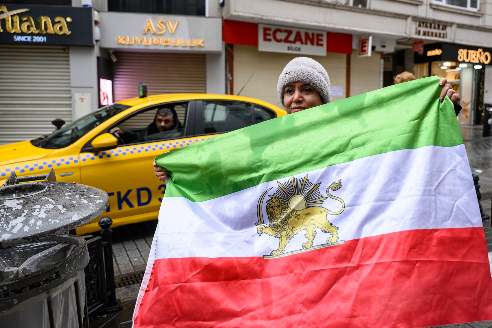 周日(1月11日),民众聚集在伊朗驻伊斯坦布尔总领事馆外,声援伊朗人民的抗议活动。但警方在领事馆外设置了封锁线,阻止人群靠近使馆。