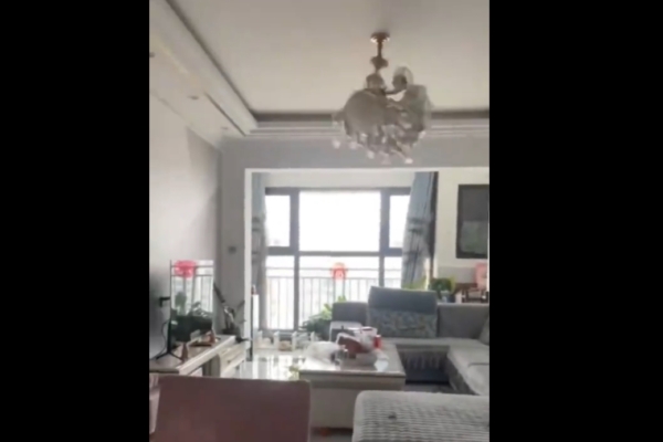 网传视频显示,一居民家的吊灯不断地哗啦哗啦地摇摆,女主人吓得躲到桌子下,并发出呻吟声。