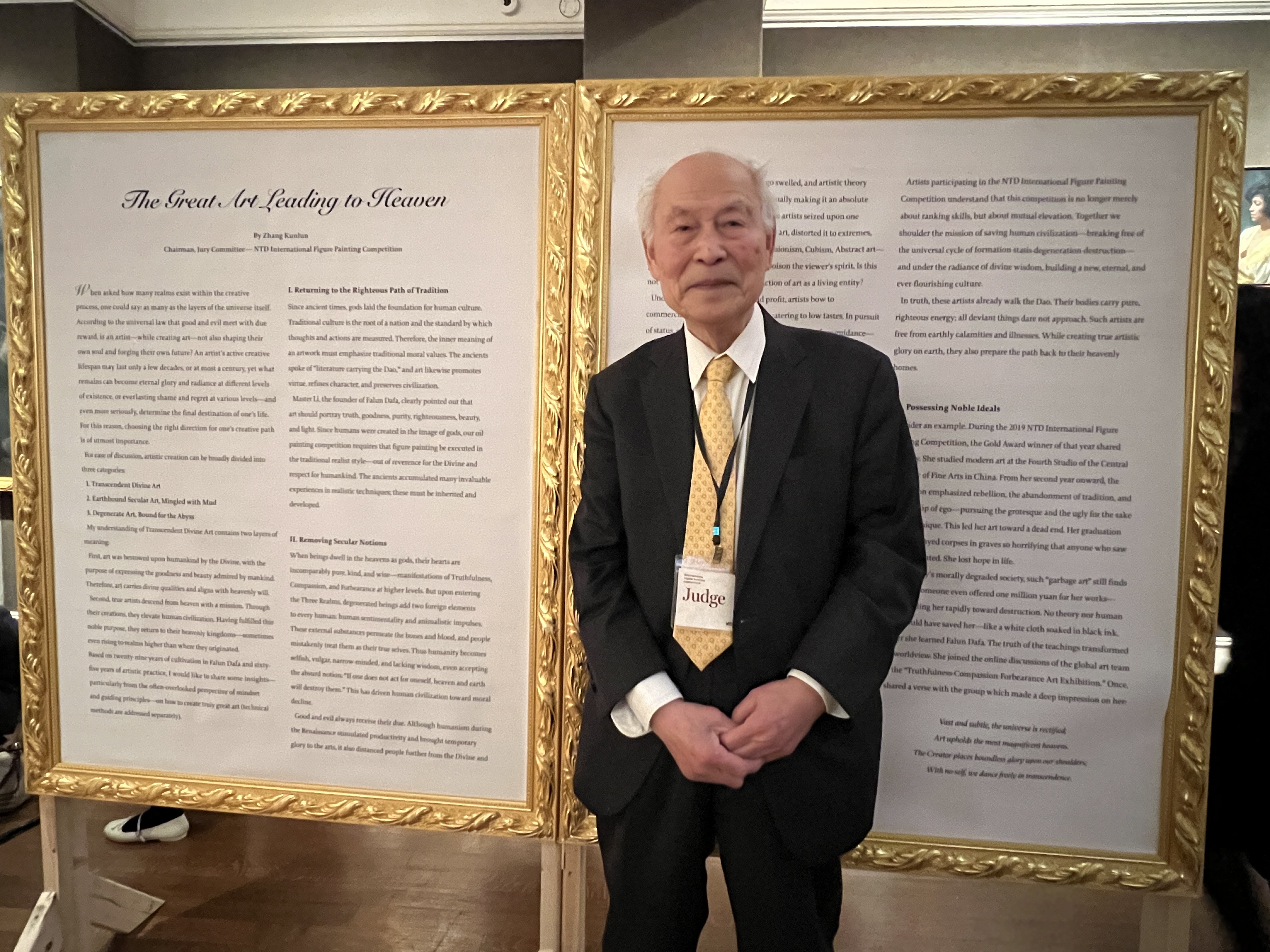 大赛评委主席张昆仑教授说,“这说明艺术家们对新唐人大赛的宗旨越来越深刻地理解了。从这一点上看,这个比赛不仅从技法上,而且在内涵上确实起到了引领的作用。”