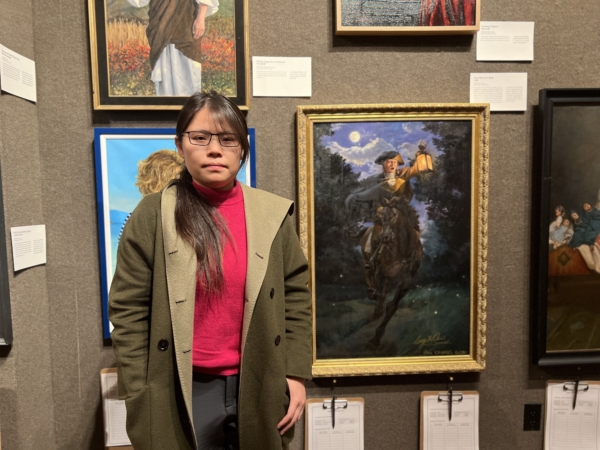 中国选手崔露西以一幅《李维提灯夜奔》参展。她认为,写实作品既能打动人心,又对艺术家本身的修养有提升,所以她选择参加新唐人的油画大赛。